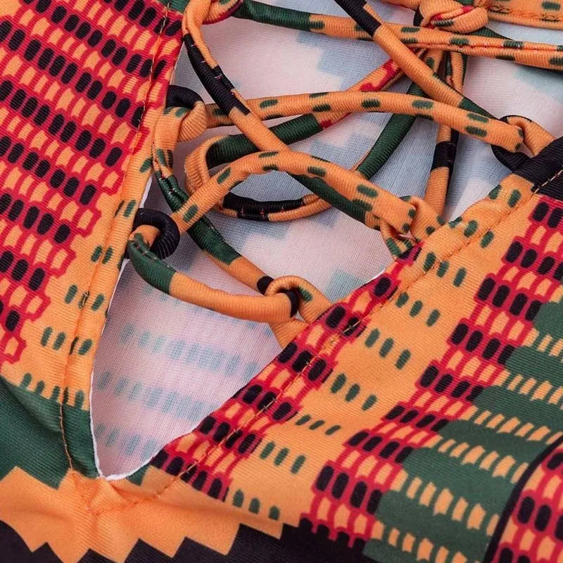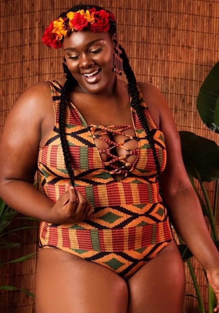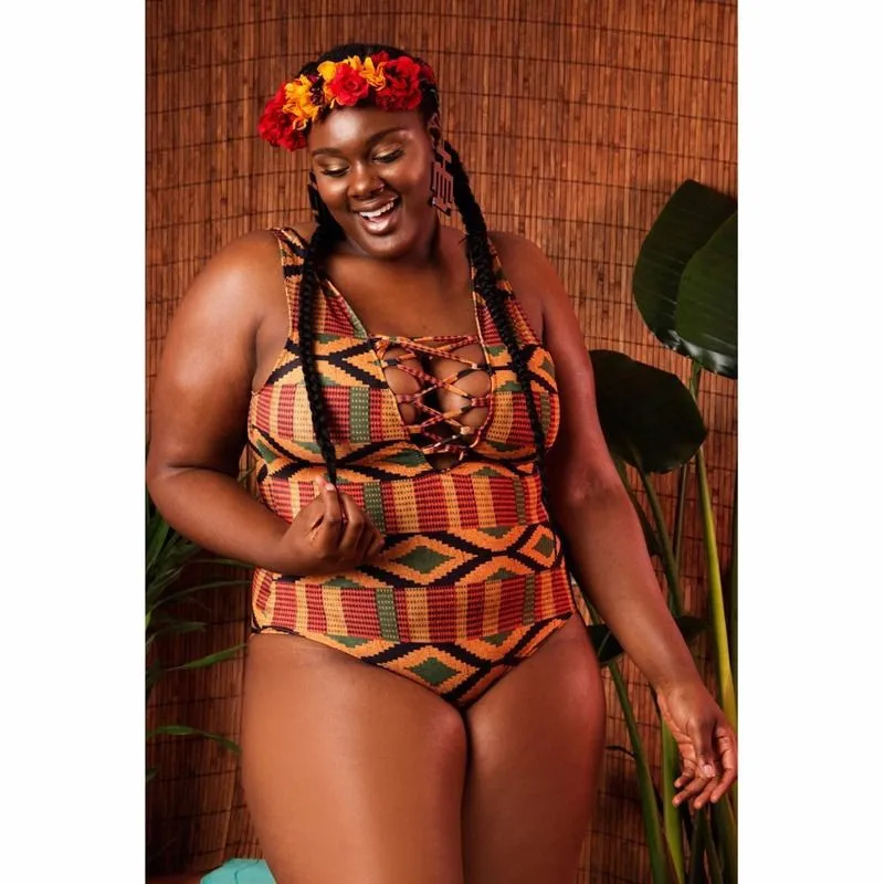 | Product Name | African Print One-Piece Lace-Up Plus Size Swimsuit |