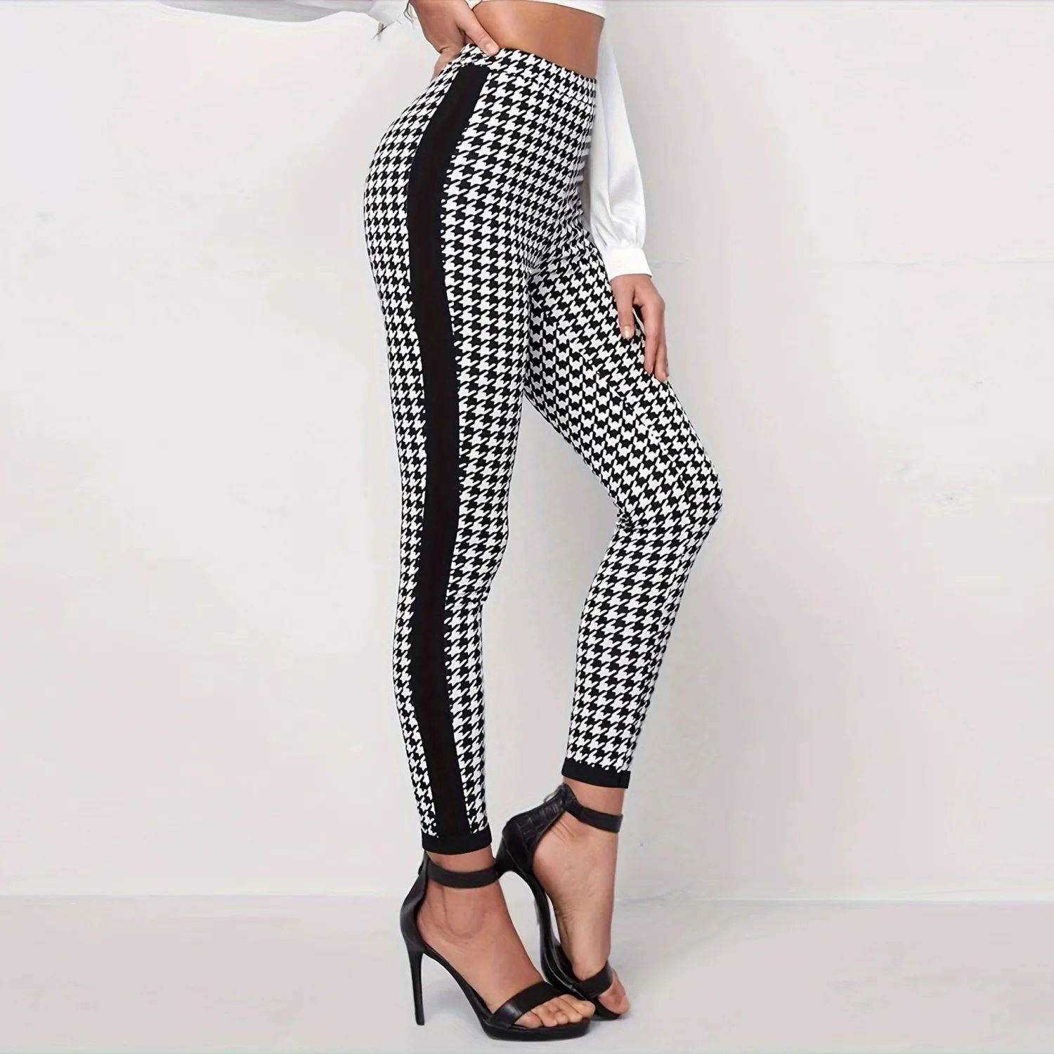 | Product Name | Autumn And Winter Houndstooth Print Trousers Black Stripes Patchwork Slim High Waist Pencil Pants |