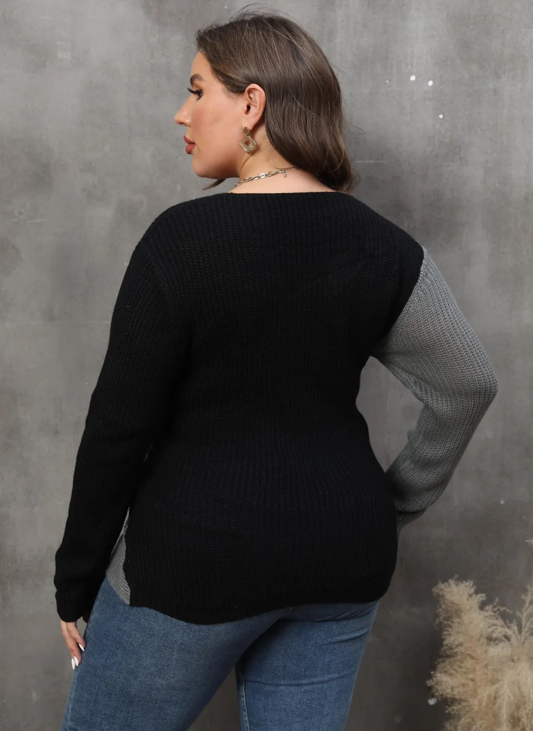 | Product Name | Autumn/Winter Women’s Tops Plus Size Ladies Contrast Color Patchwork Deep V Crossover Sexy Sweater |