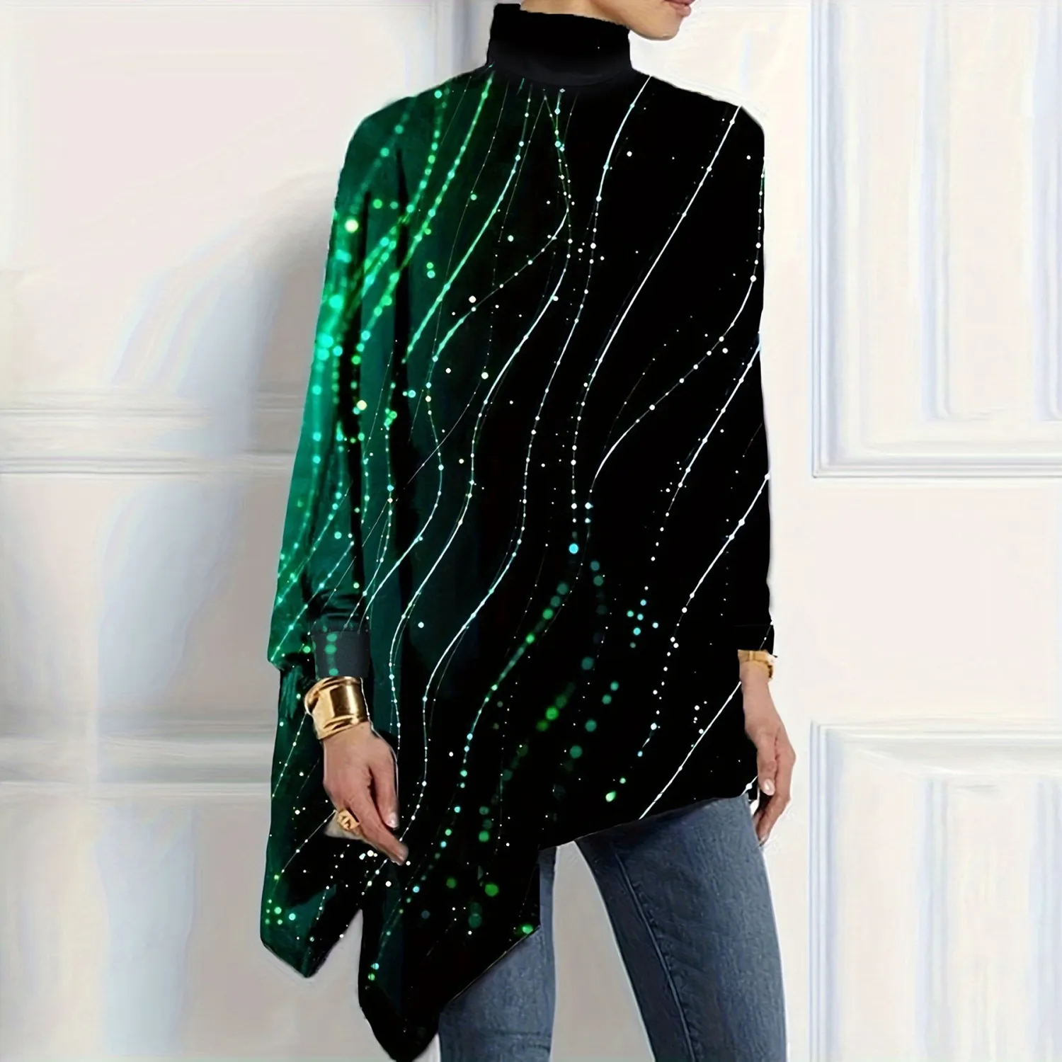 | Product Name | Christmas Women Printed Loose Turtle Collar Casual Irregular Top |