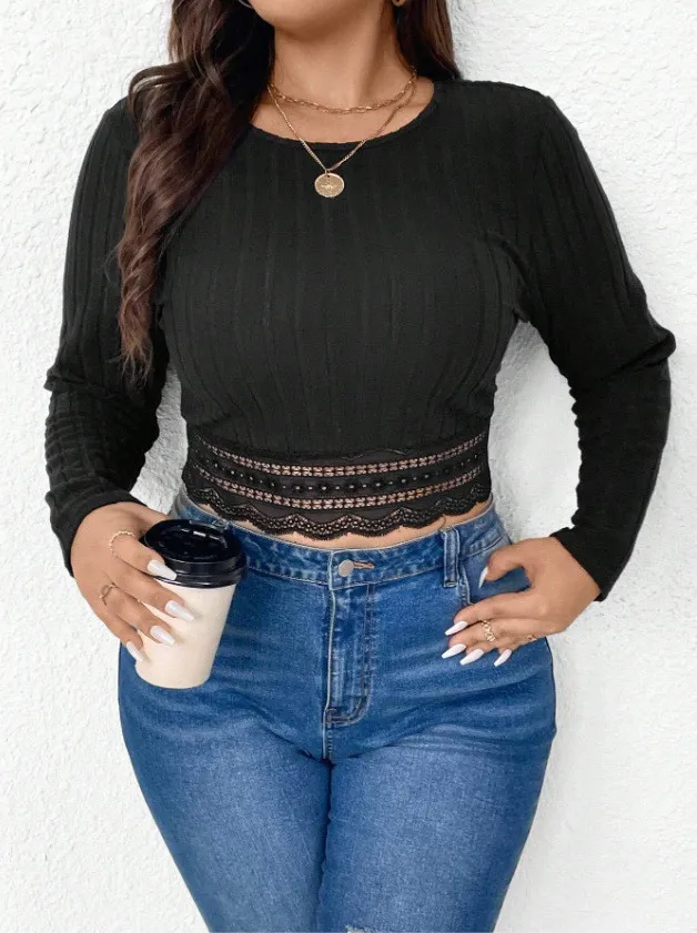 | Product Name | Colorblock Plus Size Women Lace Patch Round Neck T-Shirt |
