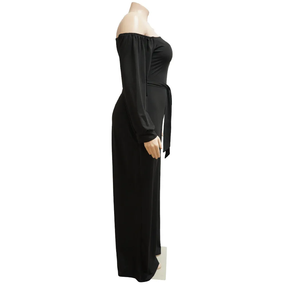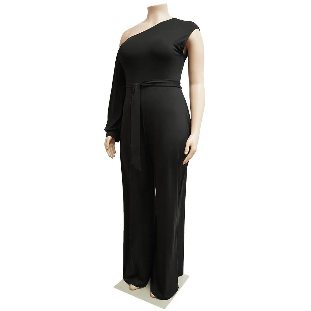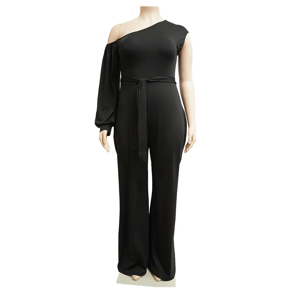 | Product Name | Fall Plus Size Women’S Slash Shoulder Single Sleeve Wide Leg Jumpsuit With Belt |