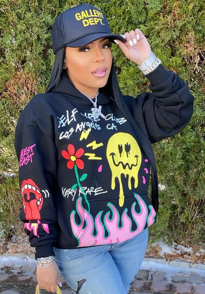 This Fall Winter Signature Print Plus Size Hoodies With Pockets Made Of Comfortable And Elastic Fabric. It Is Wholesale Sexy Plus Size Tops For Women. With The Gradual Rise Of Feminist Awareness, The Mainstream Fashion Of “Beauty With Thinness” In The Past Can No Longer Dominate, Global Lover Advocates That No Matter Whether The Body Is Thick Or Thin, We Are The Most Unique Existence. Fat Girls Can Also Show Off Their Figure Generously. Global Lover Offer All Kinds Of Wholesale Plus Size Blouses And Shirts At Cheap Price And High Quality.