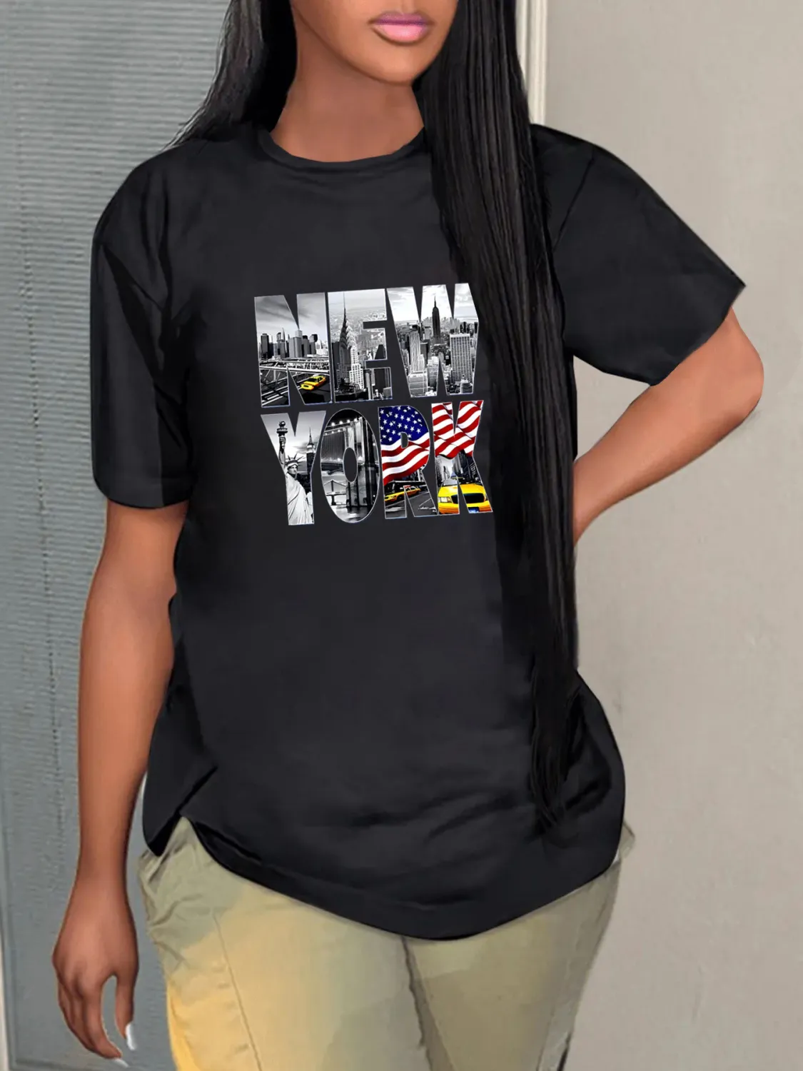 | Product Name | Fashion Casual Women’s Graphic Print Round Neck Short Sleeve Plus Size T-Shirt |