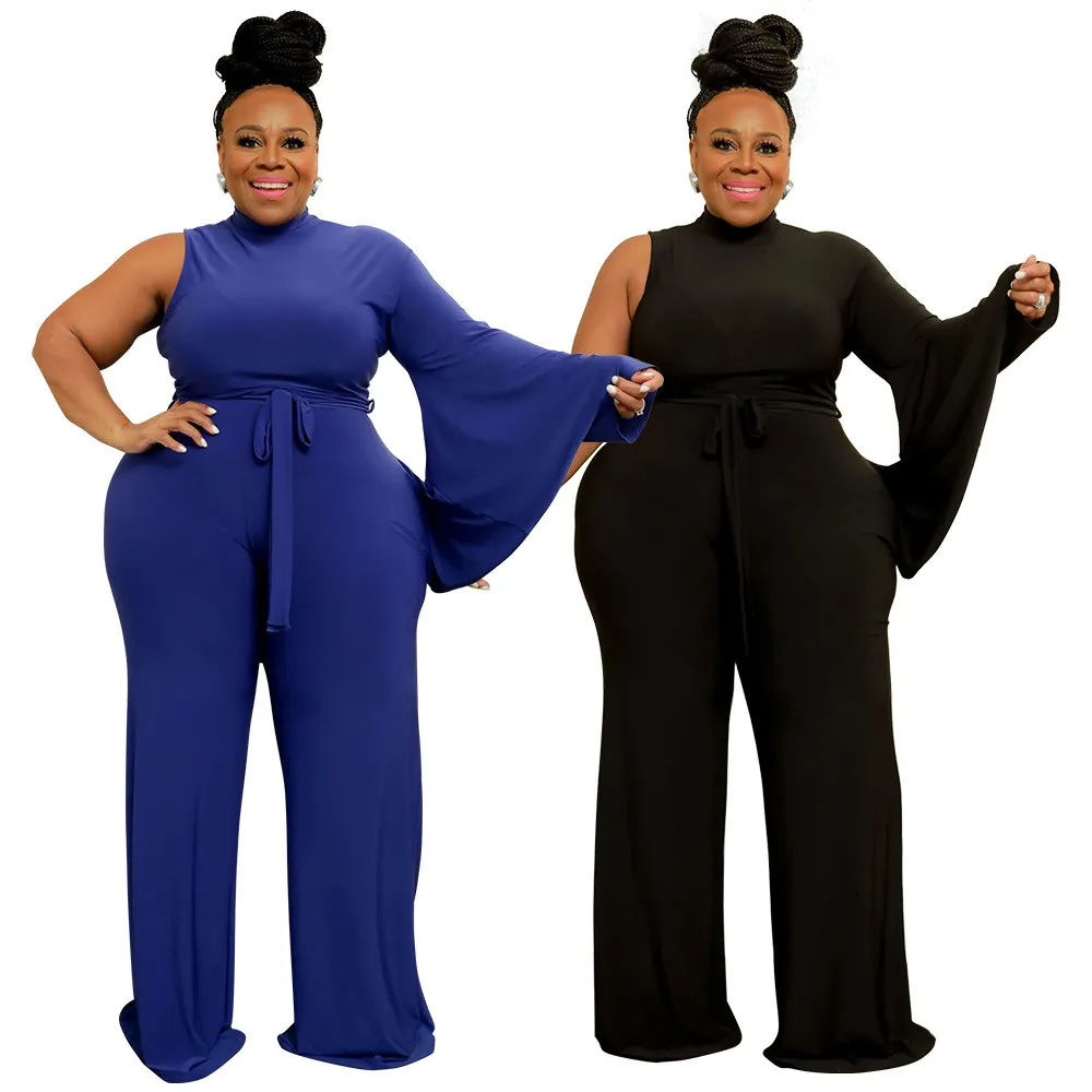 | Product Name | Fashion Plus Size Women’s Solid Lace-Up Slash Shoulder Wide Sleeve Jumpsuit |