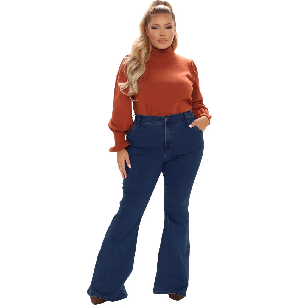 This Fashion Slim Wide Leg Plus Size Jeans Bell Bottom Stretch Denim Pants Design Made Of Durable And Stretchy Material. It Is a Must-Have Item For Your Closet. Global Lover Offer a Rich Selection Of Wholesale Plus Size Bottoms. You Will Find Wide Range Fabric, Colors, Cut, And Designs Sexy Plus Size Trousers That Is Acturally On Trend And Cheap Price On Our Wholesale Plus Size Clothing Online Store.