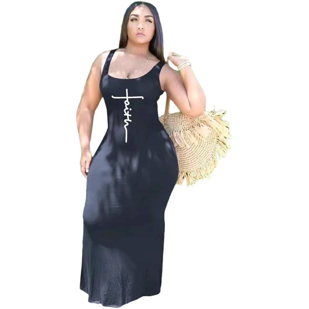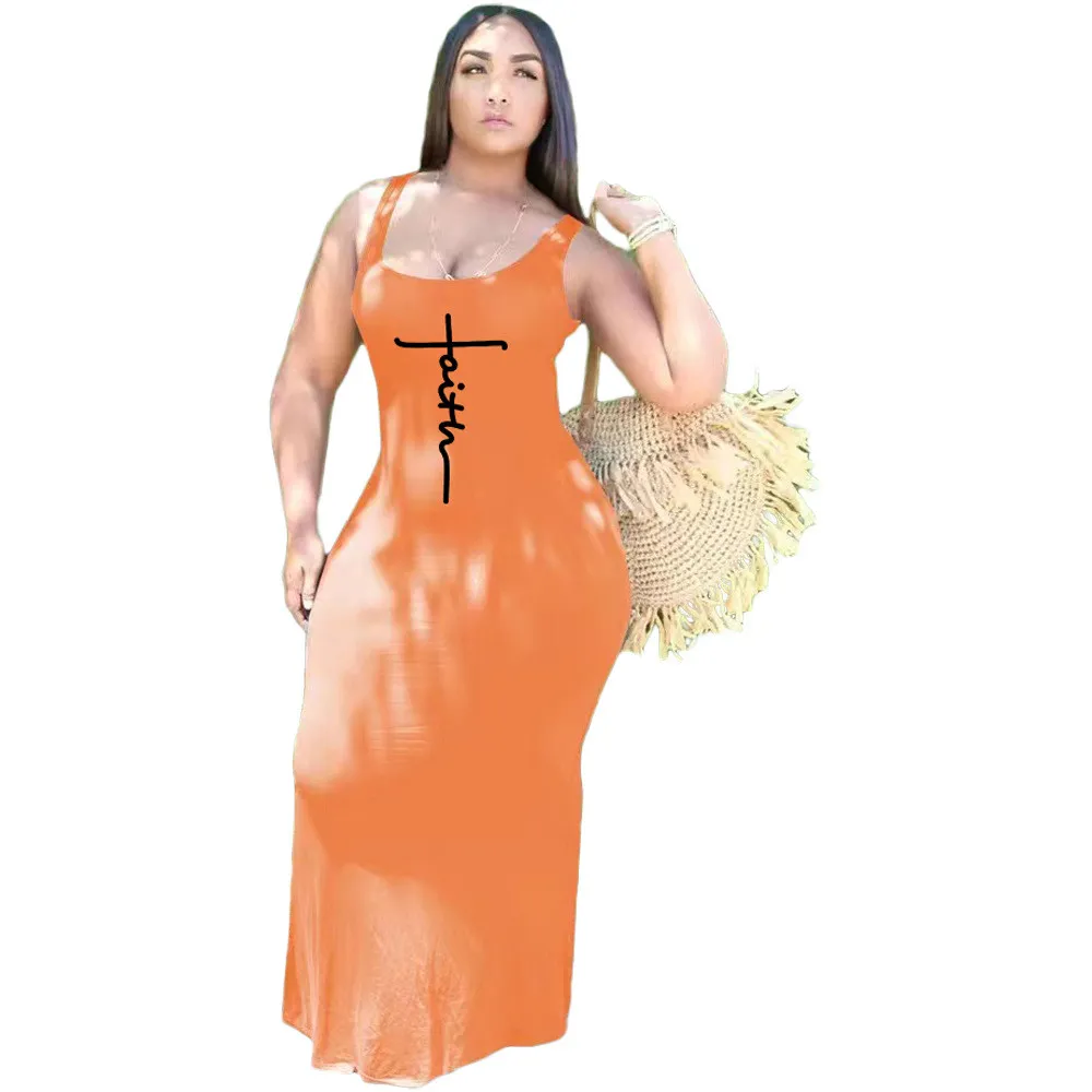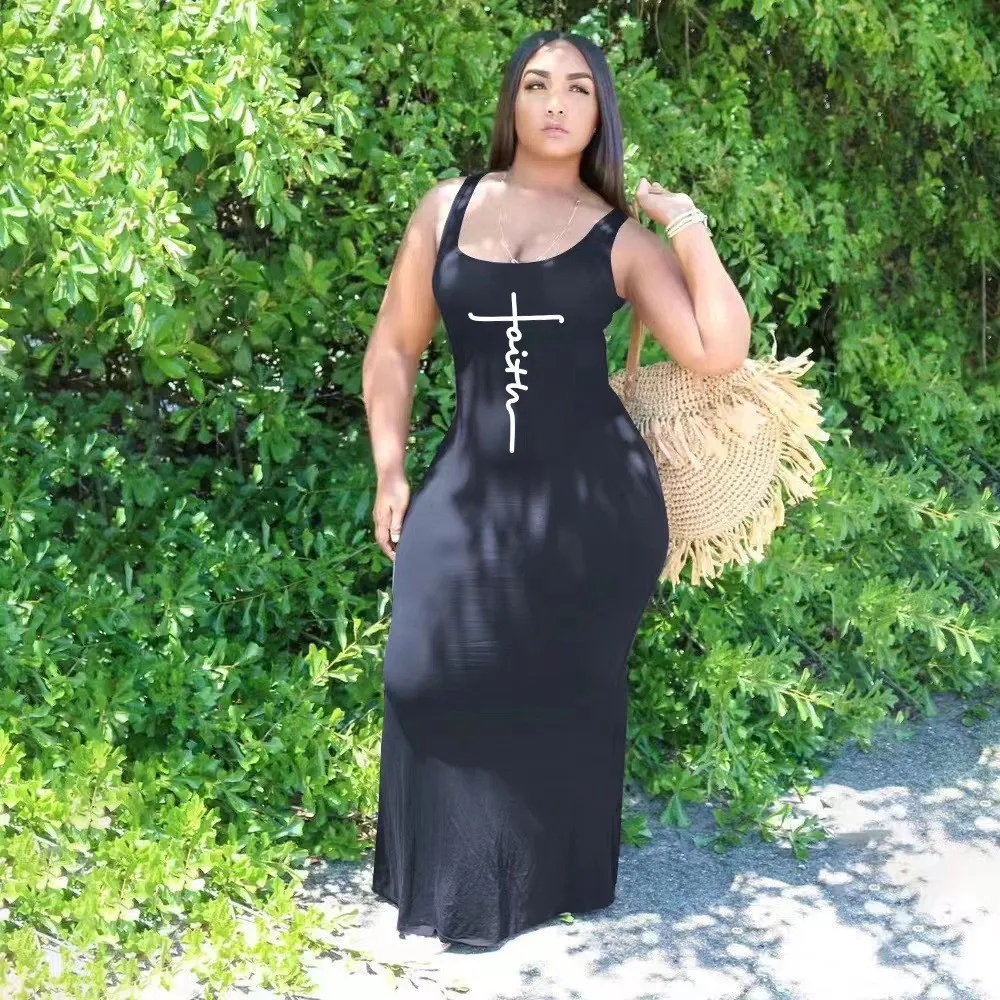 | Product Name | Fashion Women’S Solid Color Print Straps Long Dress Plus Size Dress |