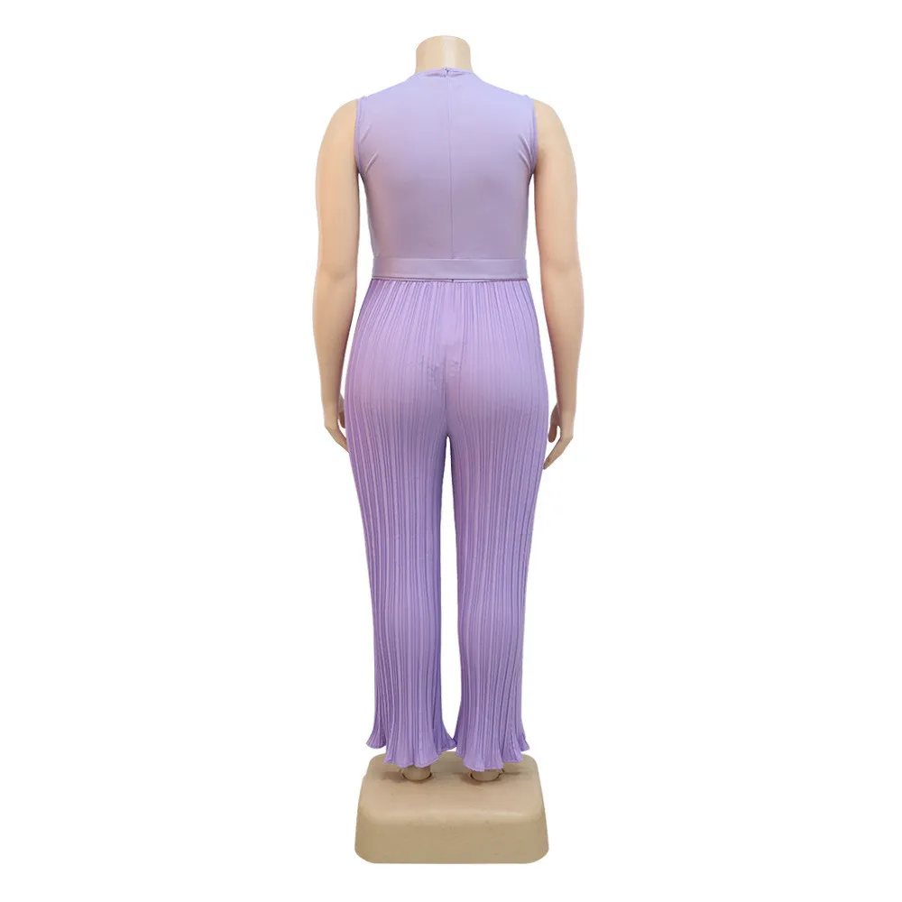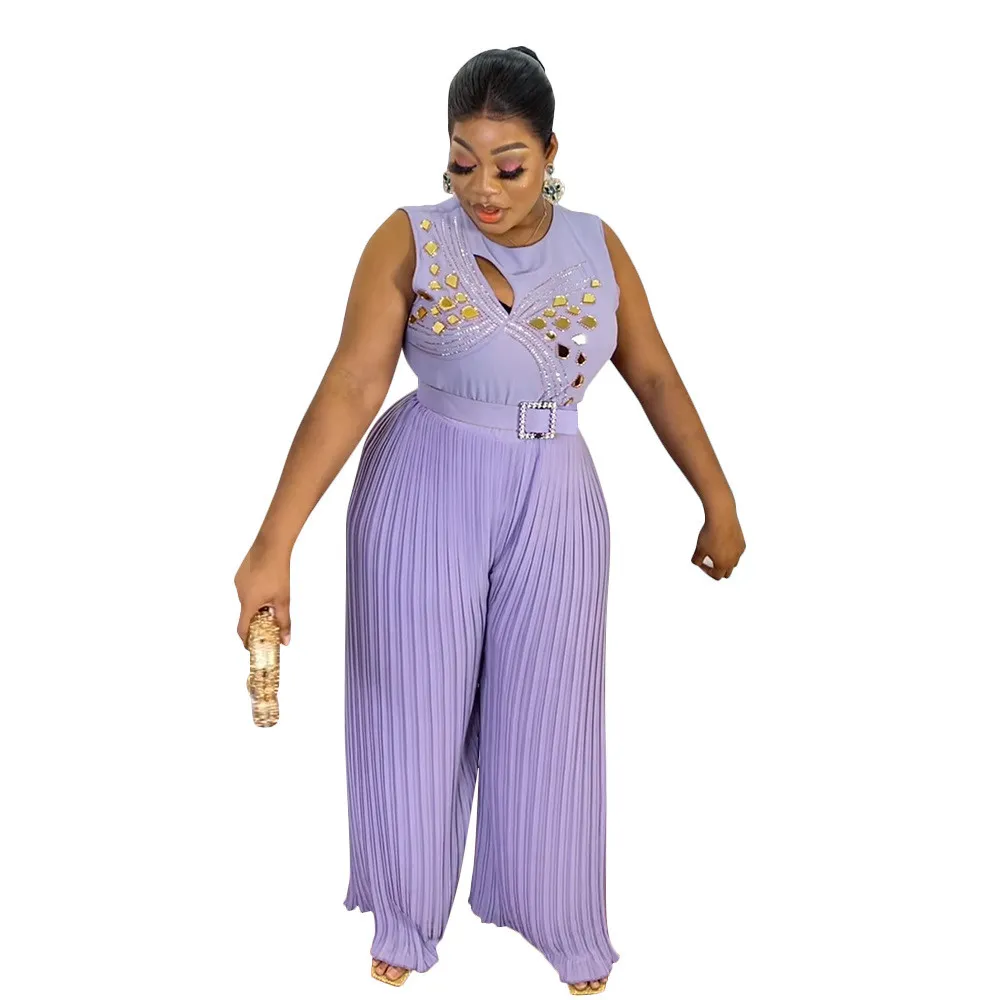 | Product Name | Ladies Round Neck Sleeveless Beaded Casual Loose Pleated Jumpsuit With Belt |