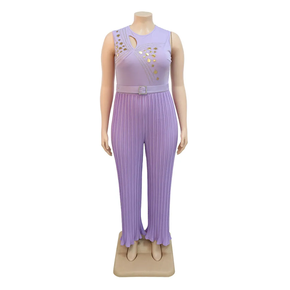 This Ladies Round Neck Sleeveless Beaded Casual Loose Pleated Jumpsuit With Belt Design Made Of High Quality Polyster And Spandex Material. It Is Stretchy, Durable And Comfortable. This Is The New Trend. Ladies Do Not Have To Worry About Dressing Matching. a Sexy Tight Fitting Jumpsuits And Rompers For Women Will Make Your Heart Beats In The Parties. a Loose Cut Jumpsuit With Wide Legs Appears More Elegant For Occasions. When You Need More Sexy Plus Size Jumpsuits Wholesale Online, You Can Find All Sizes Xl, Xxl, Xxxl, Xxxxl, Xxxxxl, Xxxxxxl At Global Lover.