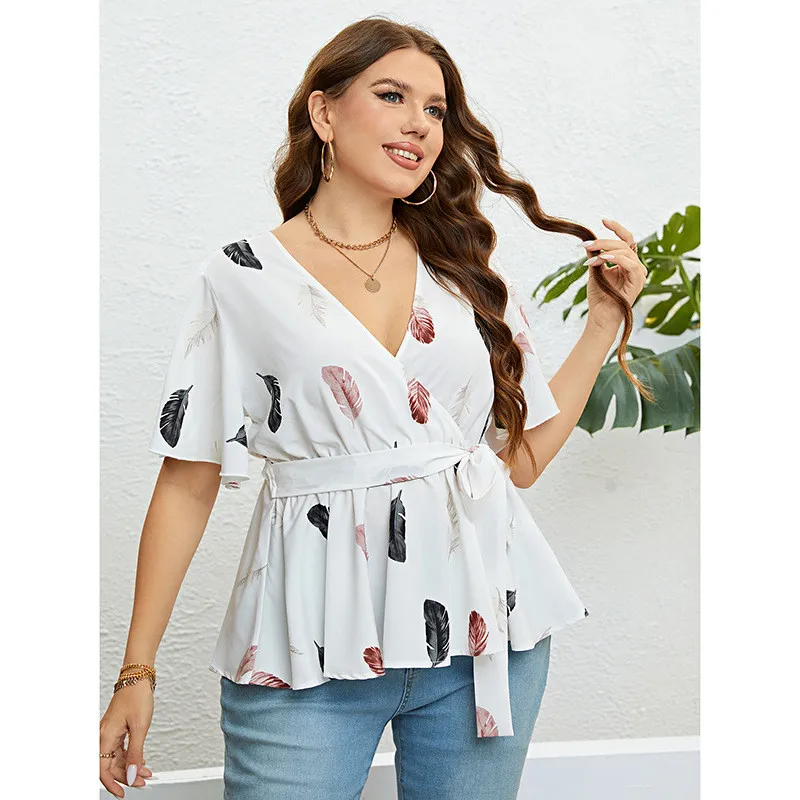 This Ladies Summer Print Lace-Up Top Made Of Comfortable And Elastic Fabric. It Is Wholesale Sexy Plus Size Tops For Women. With The Gradual Rise Of Feminist Awareness, The Mainstream Fashion Of “Beauty With Thinness” In The Past Can No Longer Dominate, Global Lover Advocates That No Matter Whether The Body Is Thick Or Thin, We Are The Most Unique Existence. Fat Girls Can Also Show Off Their Figure Generously. Global Lover Offer All Kinds Of Wholesale Plus Size Blouses And Shirts At Cheap Price And High Quality.
