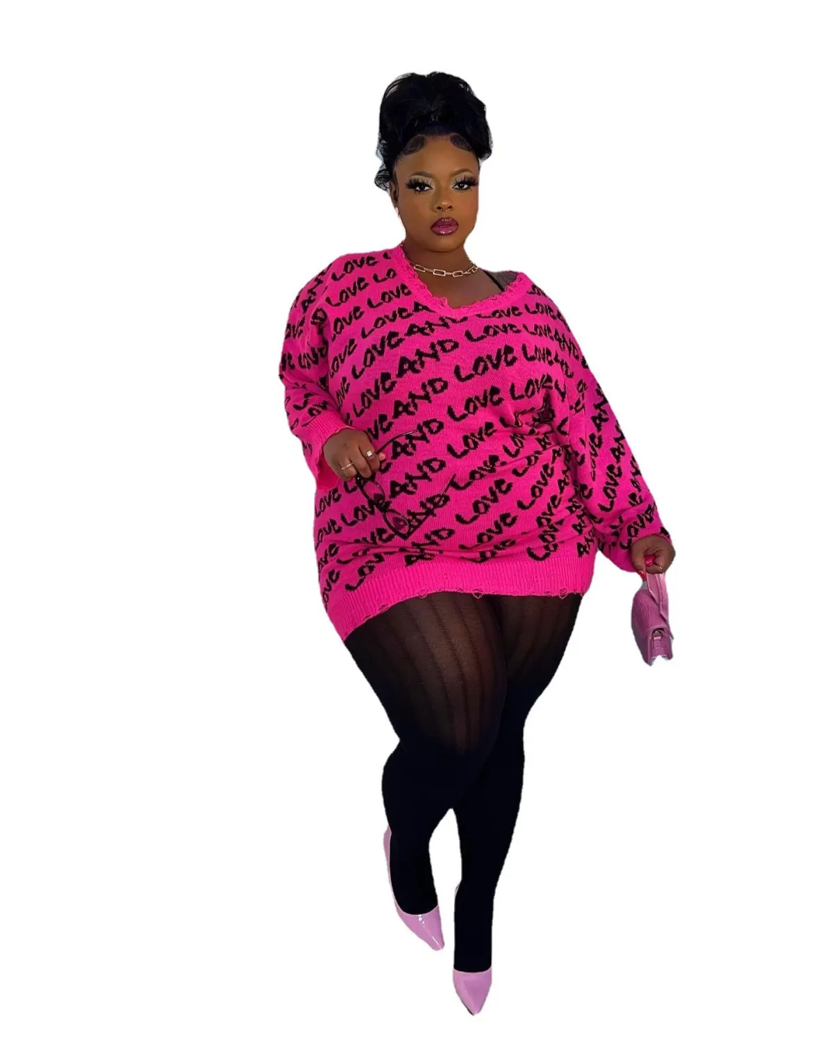 This Plus Plus Size Women’s Knitting Letter Ripped Sweater Maxi Sweater Made Of Comfortable And Elastic Fabric. It Is Wholesale Sexy Plus Size Tops For Women. With The Gradual Rise Of Feminist Awareness, The Mainstream Fashion Of “Beauty With Thinness” In The Past Can No Longer Dominate, Global Lover Advocates That No Matter Whether The Body Is Thick Or Thin, We Are The Most Unique Existence. Fat Girls Can Also Show Off Their Figure Generously. Global Lover Offer All Kinds Of Wholesale Plus Size Blouses And Shirts At Cheap Price And High Quality.