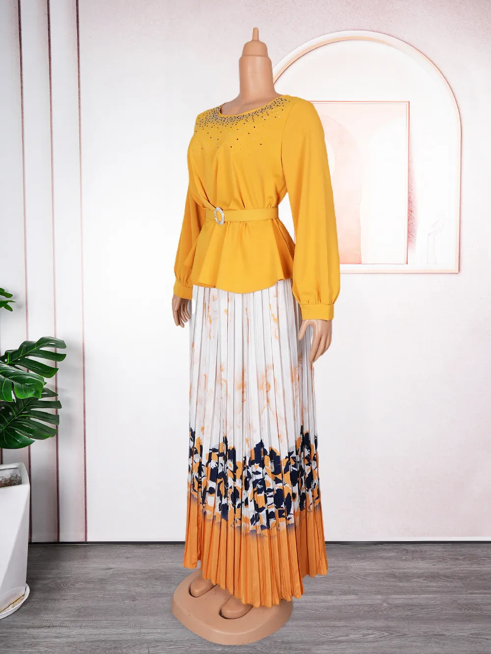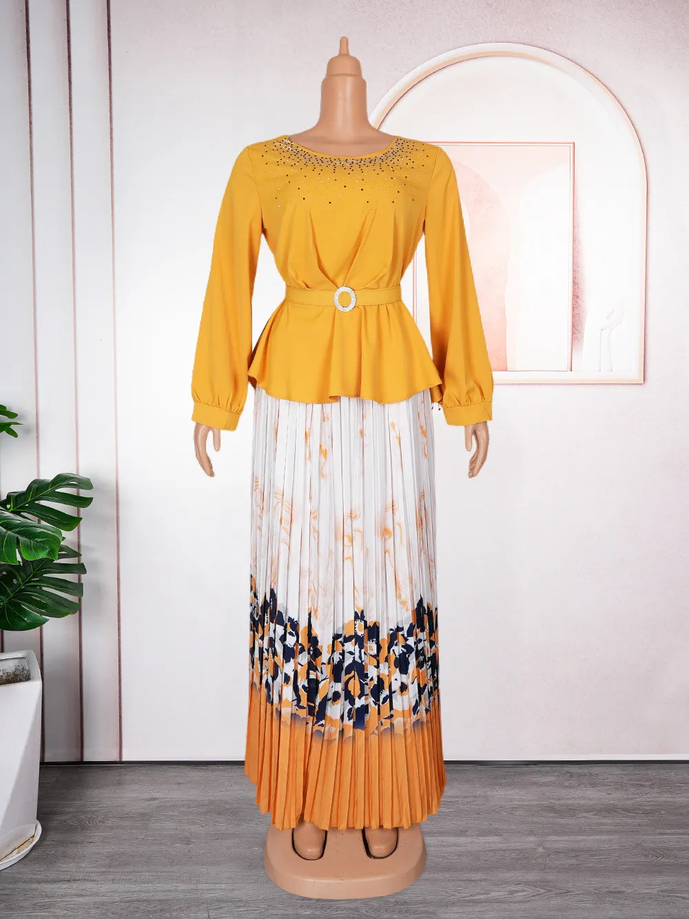 | Product Name | Plus Size African Women Chic Top+ Printed Pleated Skirt Two-piece Set |