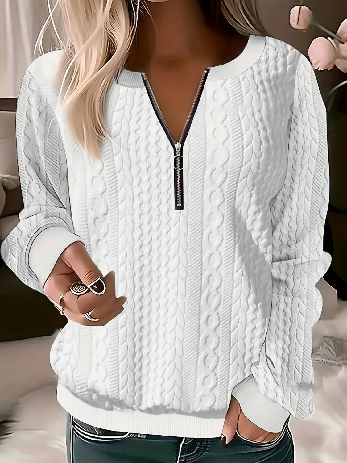 | Product Name | Plus Size Autumn Solid Color Long Sleeve Zipper V-Neck Loose Top Women’s Clothing |