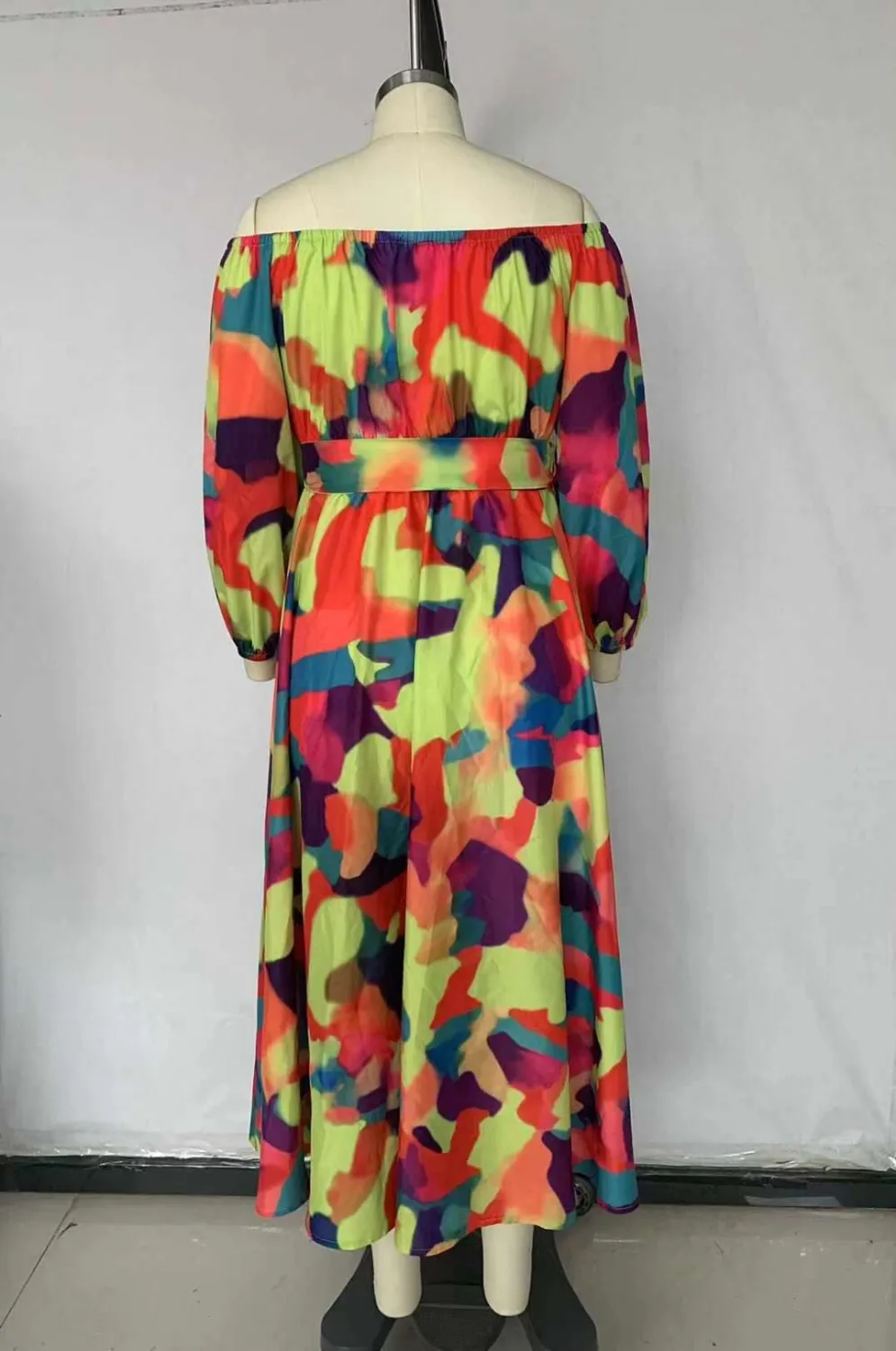 | Product Name | Plus Size Dress Chic Print Fashion Button Loose Long Sleeve Dress |