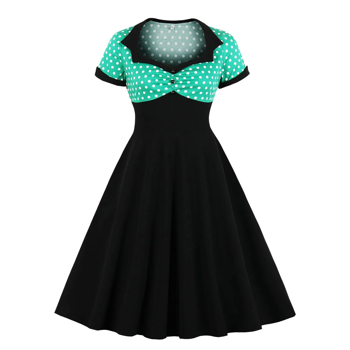 | Product Name | Plus Size Polka Dot Square Neck Vintage Slim Waist Short Sleeve High Waist Swing Dress |