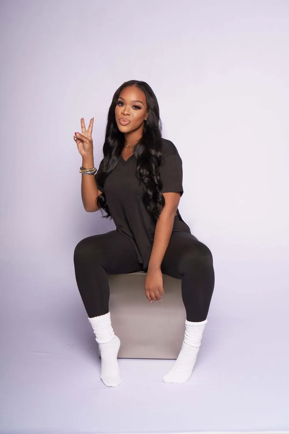 | Product Name | Plus Size Solid Color Slit V-Neck Two-Piece Set |