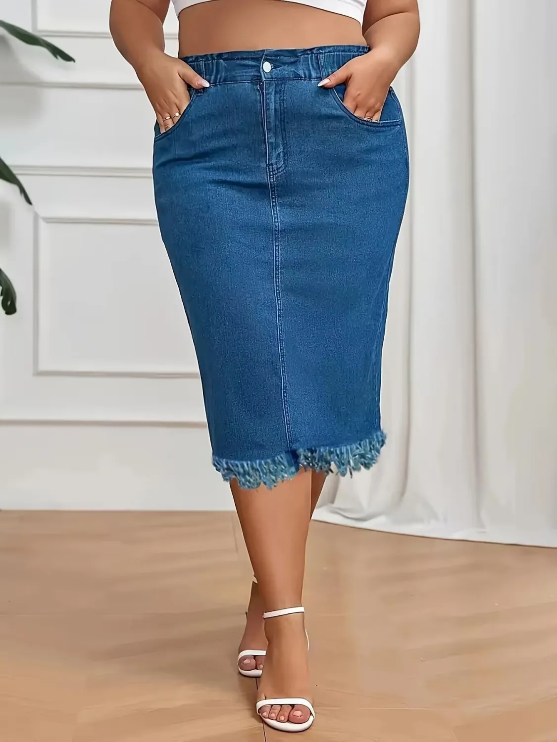 | Product Name | Plus Size Tassel Stretch Denim Skirt |