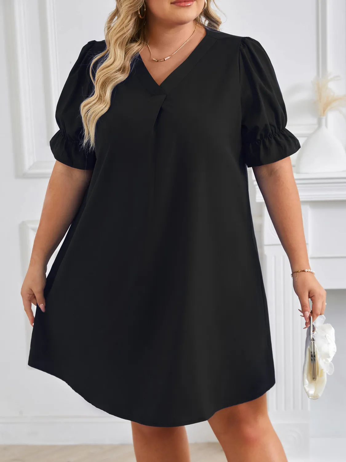 | Product Name | Plus Size V Neck Short Sleeve Solid Dress |