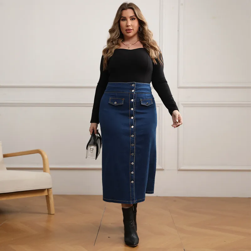 This Plus Size Women Denim Button Fake Pocket Skirt Design Made Of Durable And Stretchy Material. It Is a Must-Have Item For Your Closet. Global Lover Offer a Rich Selection Of Wholesale Plus Size Bottoms. You Will Find Wide Range Fabric, Colors, Cut, And Designs Sexy Plus Size Trousers That Is Acturally On Trend And Cheap Price On Our Wholesale Plus Size Clothing Online Store.