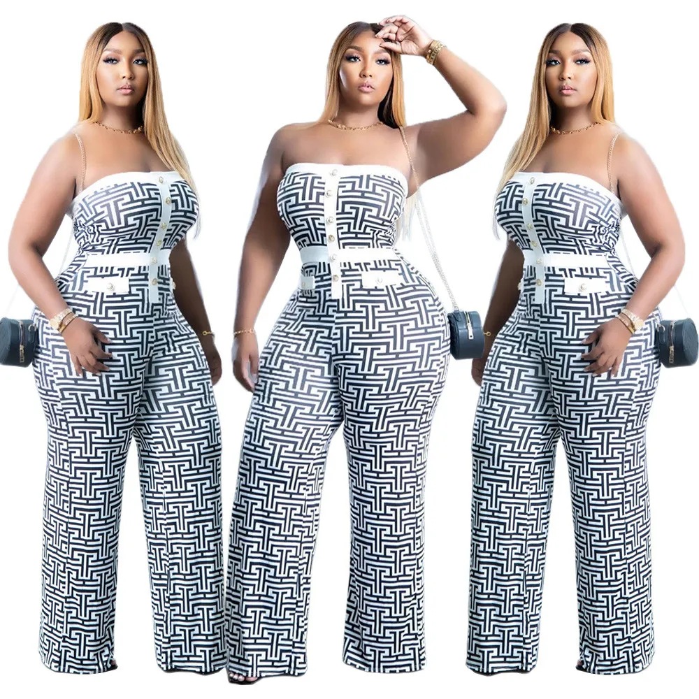 This Plus Size Women Fake Button Strapless Print Jumpsuit Design Made Of High Quality Polyster And Spandex Material. It Is Stretchy, Durable And Comfortable. This Is The New Trend. Ladies Do Not Have To Worry About Dressing Matching. a Sexy Tight Fitting Jumpsuits And Rompers For Women Will Make Your Heart Beats In The Parties. a Loose Cut Jumpsuit With Wide Legs Appears More Elegant For Occasions. When You Need More Sexy Plus Size Jumpsuits Wholesale Online, You Can Find All Sizes Xl, Xxl, Xxxl, Xxxxl, Xxxxxl, Xxxxxxl At Global Lover.
