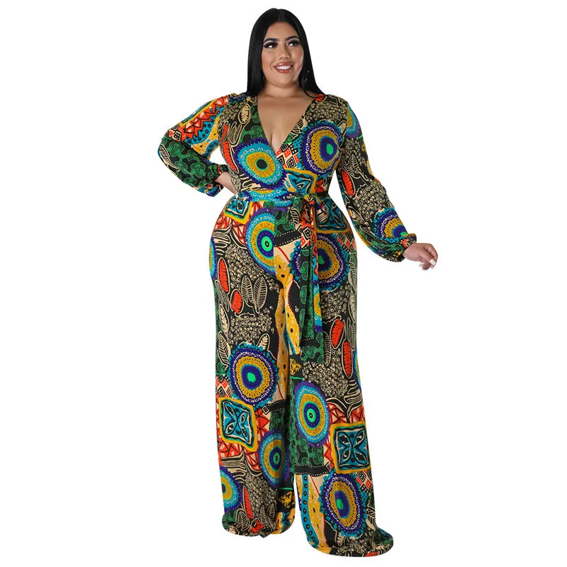 | Product Name | Plus Size Women Fall Print Long Sleeve Jumpsuit |