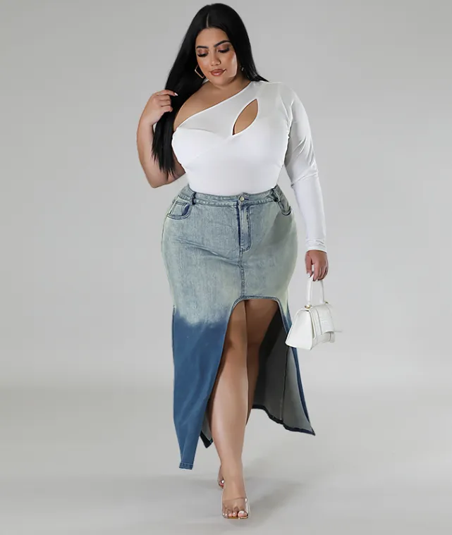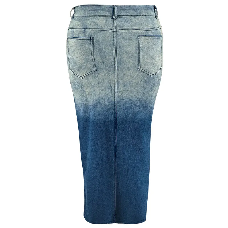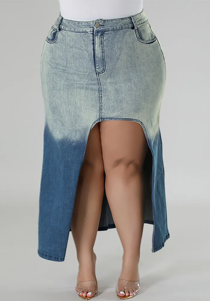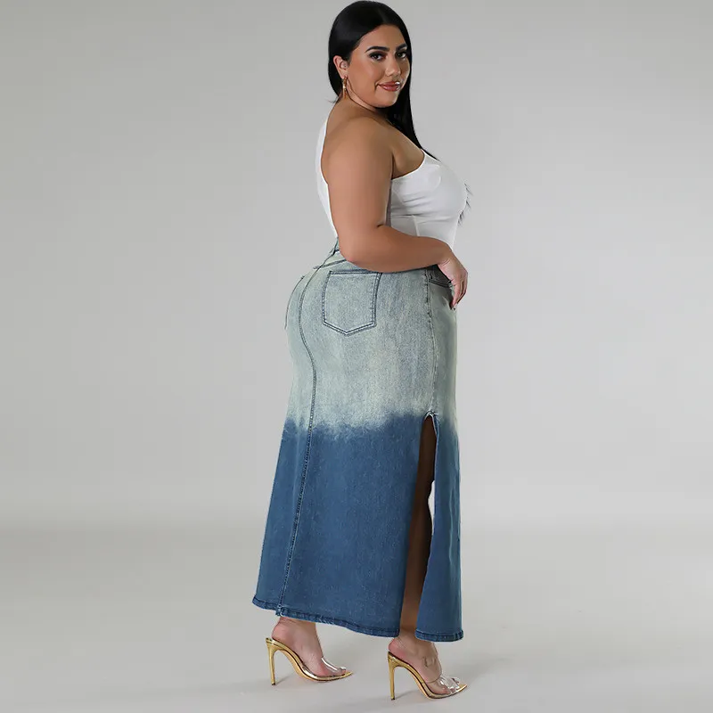 | Product Name | Plus Size Women Gradient Slit Denim Skirt |