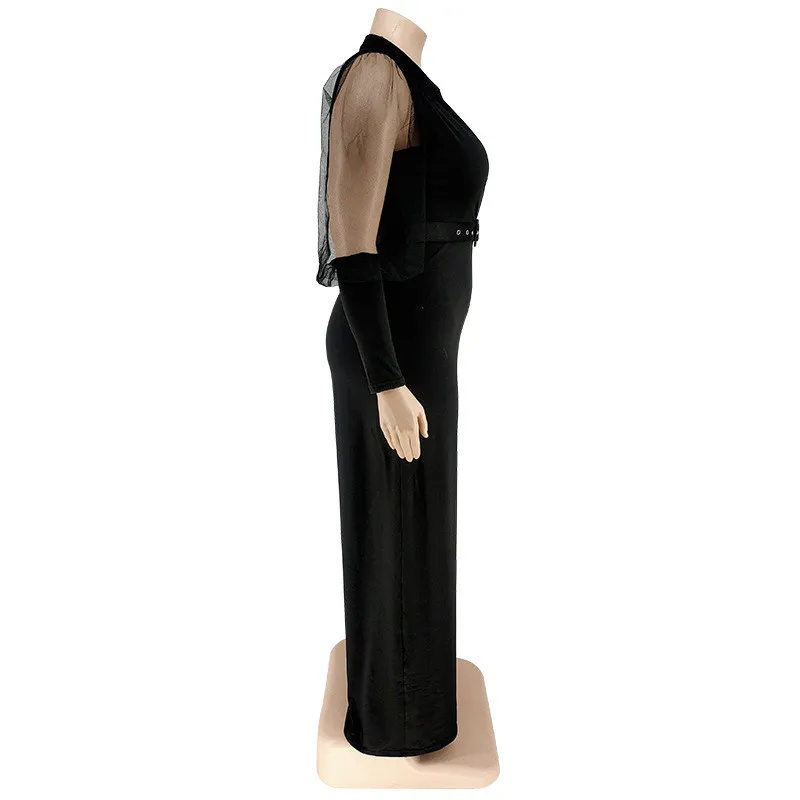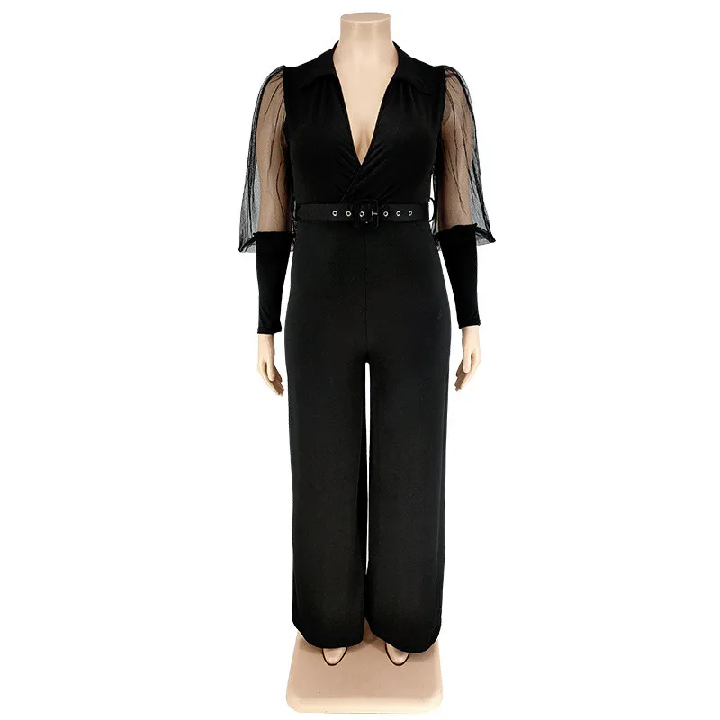 | Product Name | Plus Size Women Lapel Mesh Long Sleeve Jumpsuit with Belt |