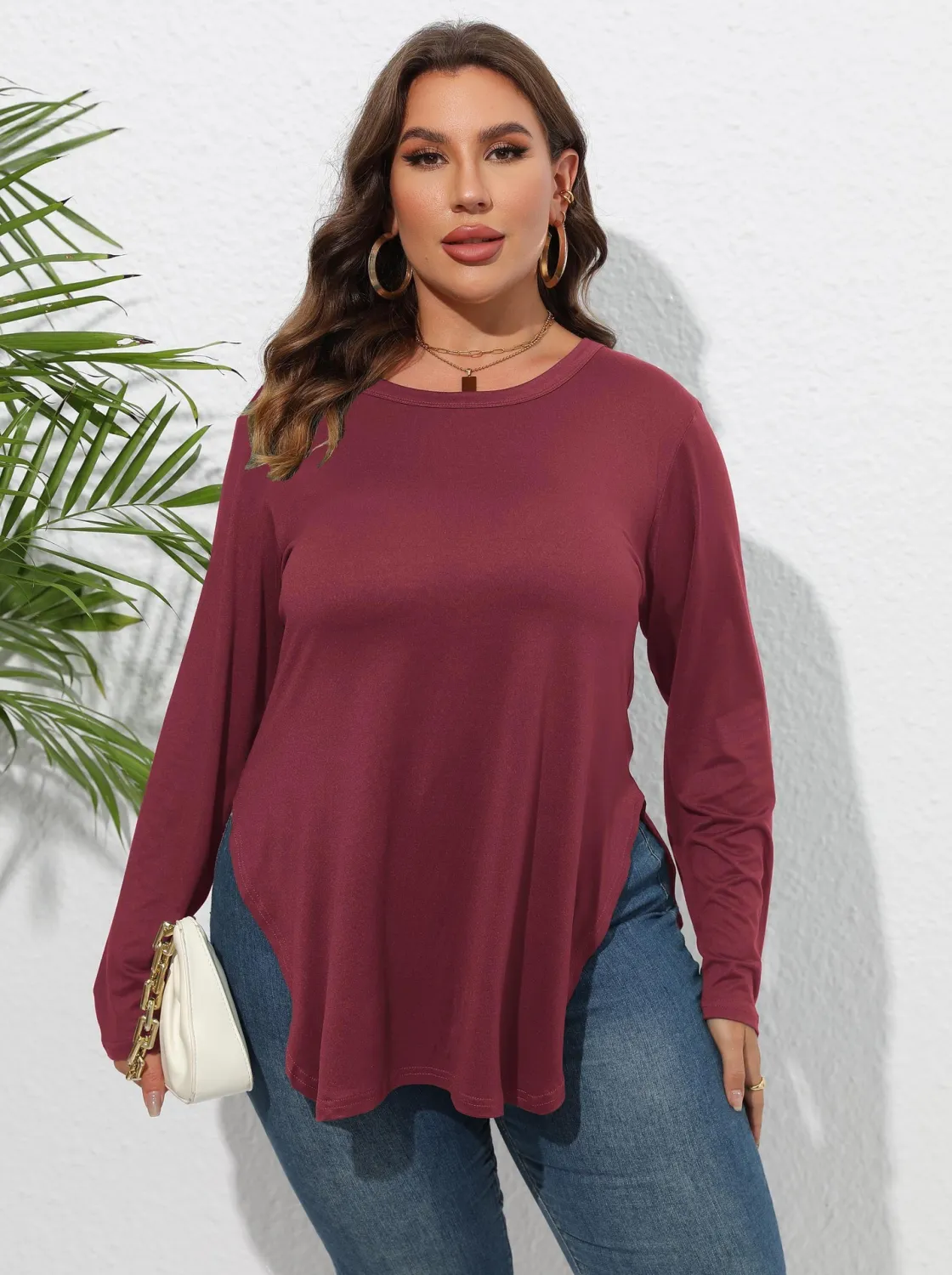 | Product Name | Plus Size Women Long Sleeve Solid Casual Cropped T-Shirt |