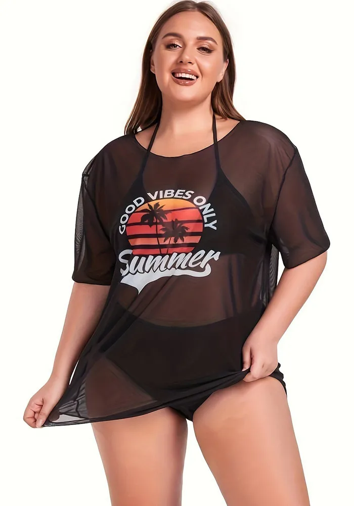 | Product Name | Plus Size Women Mesh Cover-up See-Through Sexy Bikini SwimwearThree-Piece |