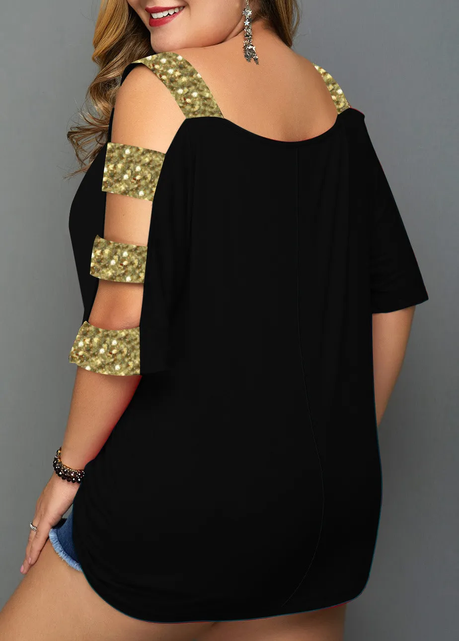 | Product Name | Plus Size Women Off Shoulder Hollow Sequin T-Shirt |