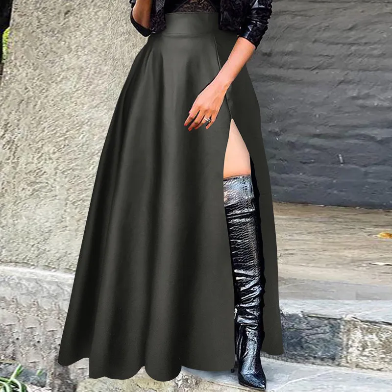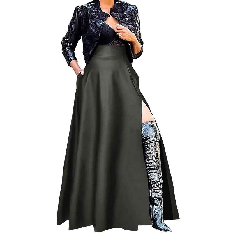 | Product Name | Plus Size Women pu-Leather Zipper Slit Skirt |