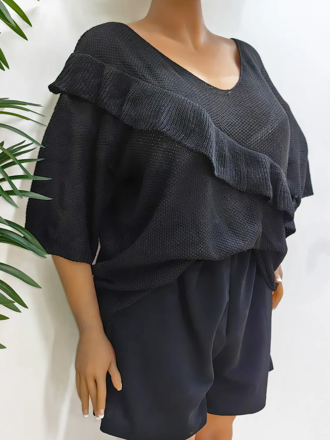 | Product Name | Plus Size Women Quarter Sleeve Top Ruffled Loose Sweater |