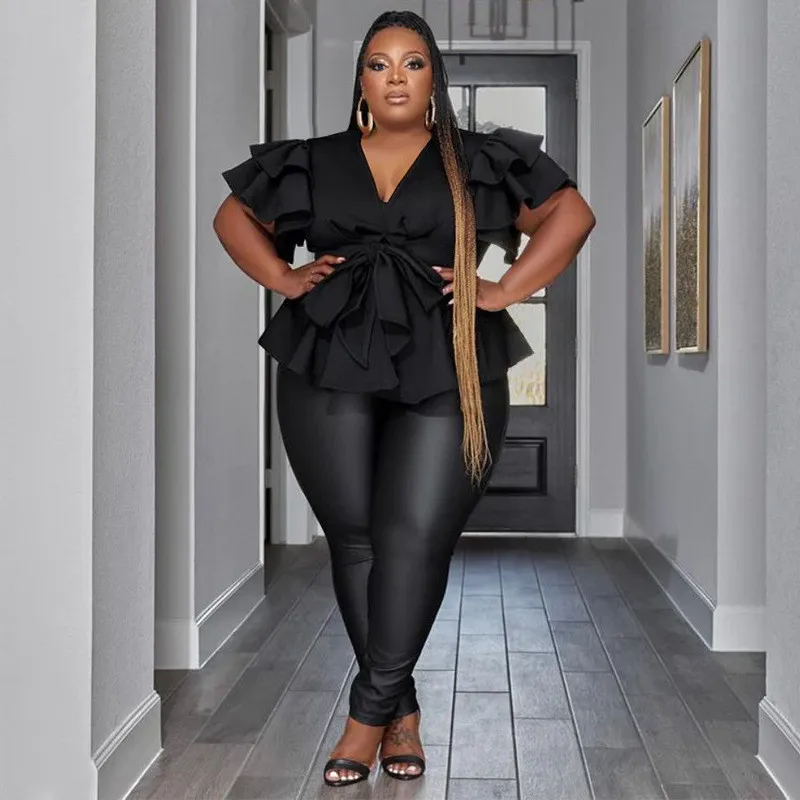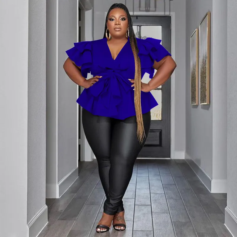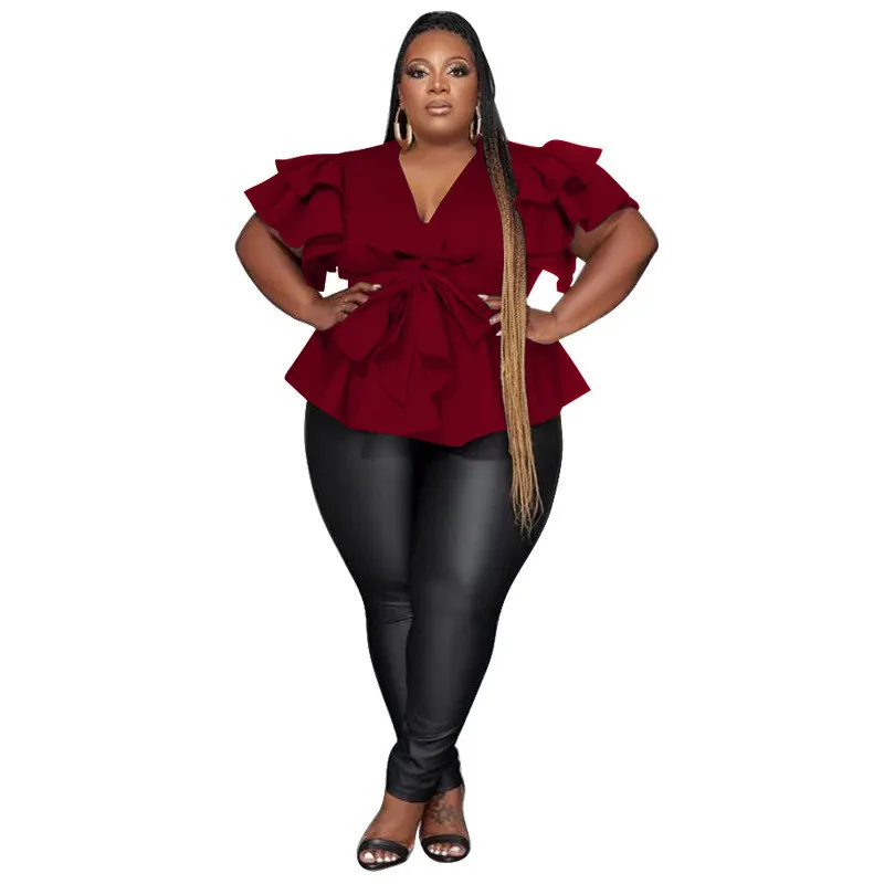 This Plus Size Women’s Casual Versatile v-Neck Ruffle Sleeve Pleated Shirt Made Of Comfortable And Elastic Fabric. It Is Wholesale Sexy Plus Size Tops For Women. With The Gradual Rise Of Feminist Awareness, The Mainstream Fashion Of “Beauty With Thinness” In The Past Can No Longer Dominate, Global Lover Advocates That No Matter Whether The Body Is Thick Or Thin, We Are The Most Unique Existence. Fat Girls Can Also Show Off Their Figure Generously. Global Lover Offer All Kinds Of Wholesale Plus Size Blouses And Shirts At Cheap Price And High Quality.