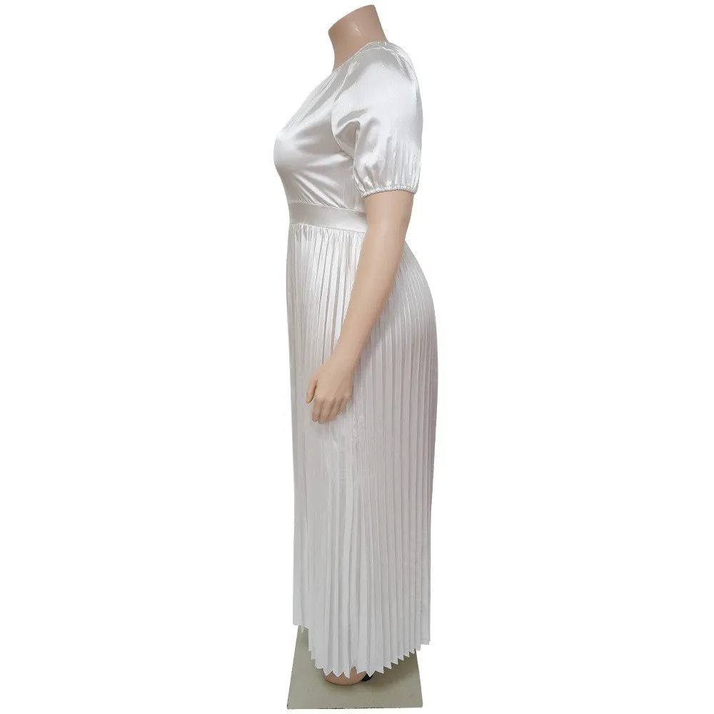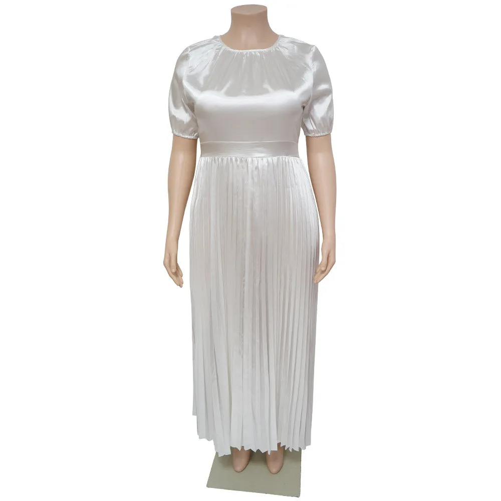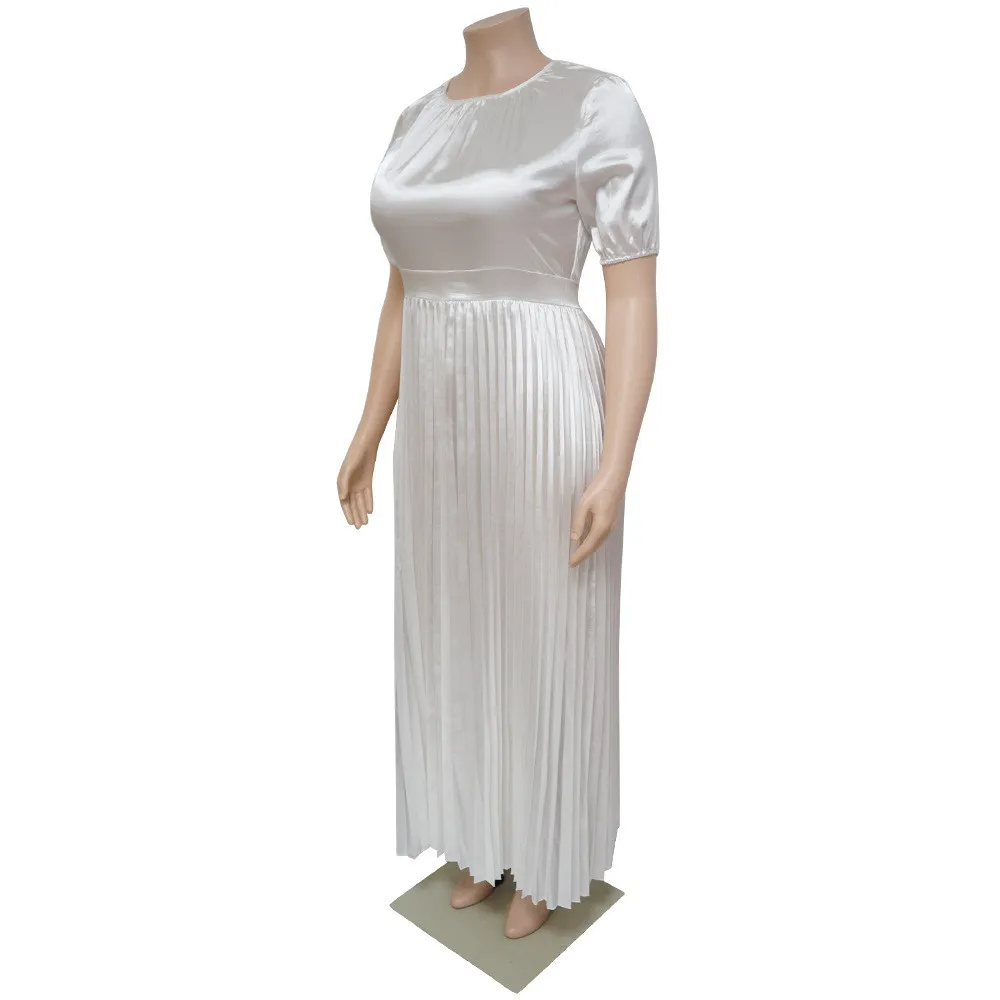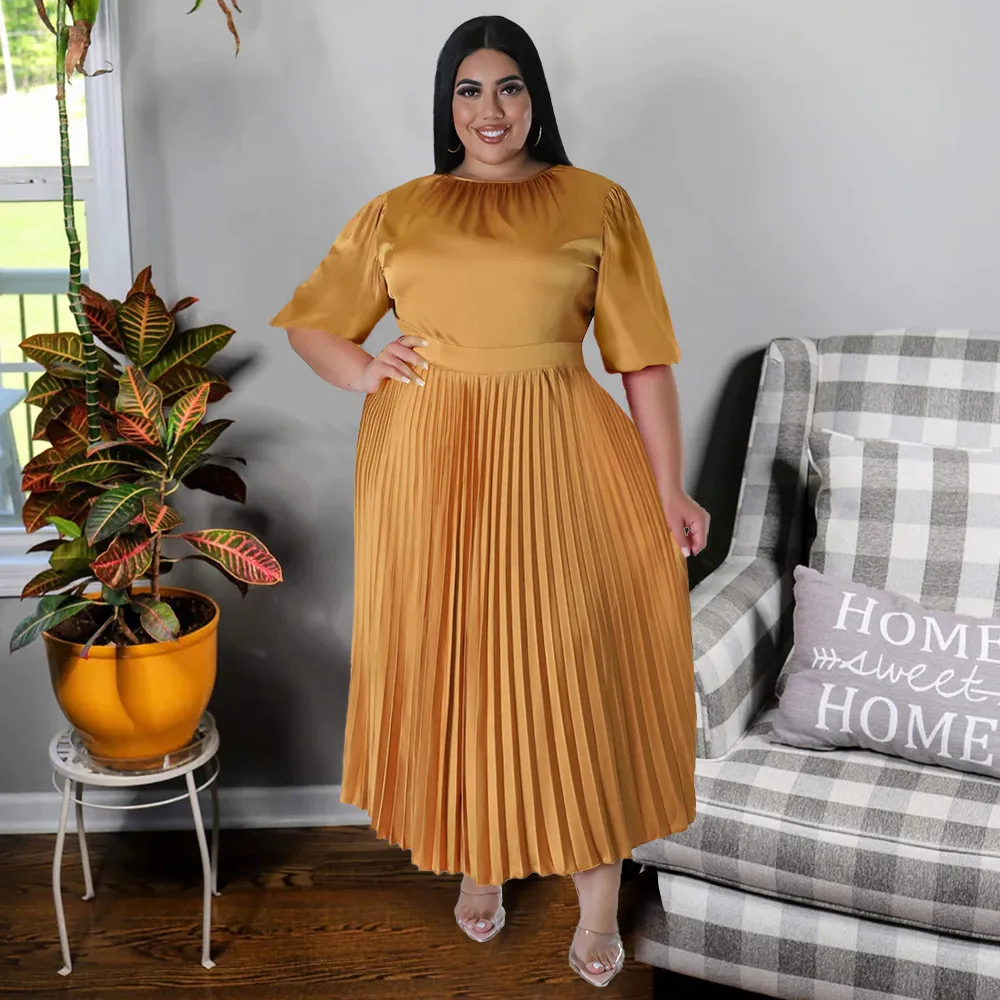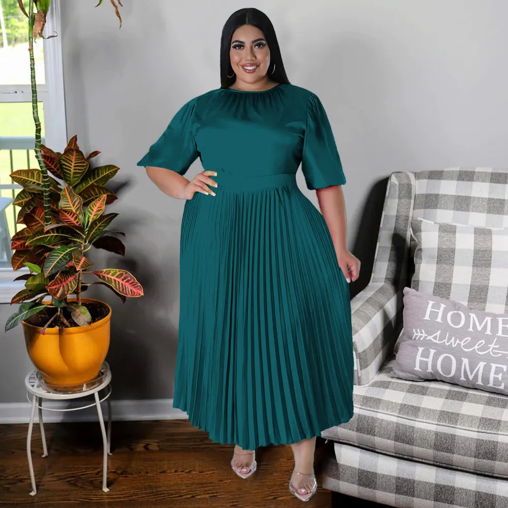 | Product Name | Plus Size Women’s Fall Winter Pleated Round Neck Long Dress Short Sleeves |
