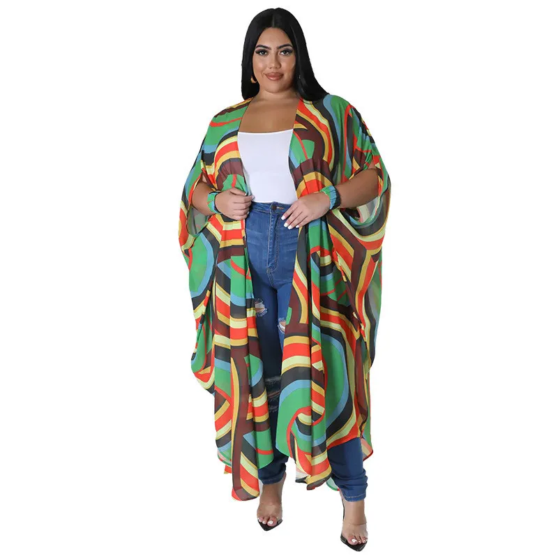 | Product Name | Plus Size Women’s Fashion Printed Chiffon Cape Shirt |