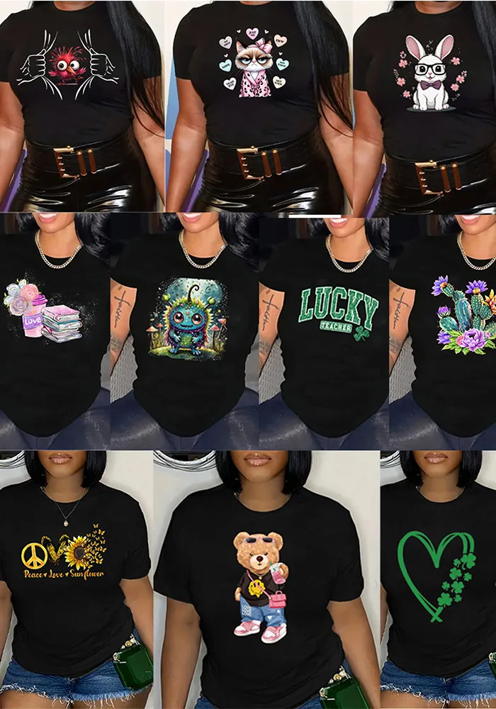 | Product Name | Plus Size Women’s Fashion Style Trendy Pattern Print Short Sleeve T-Shirt |