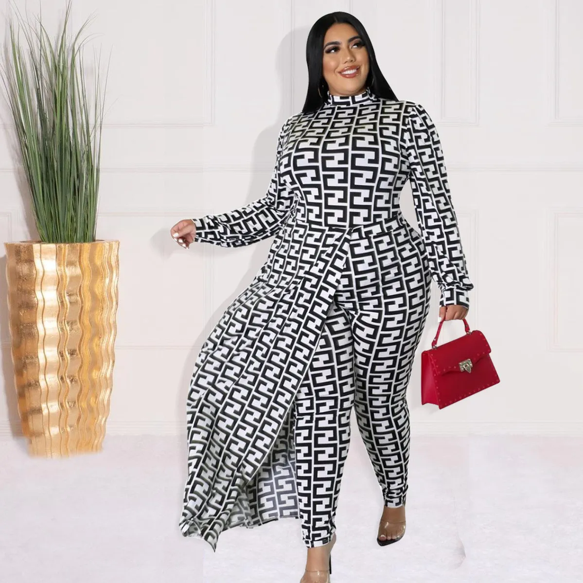 This Plus Size Women’s Long Autumn Print Fake Two-Piece Jumpsuit Design Made Of High Quality Polyster And Spandex Material. It Is Stretchy, Durable And Comfortable. This Is The New Trend. Ladies Do Not Have To Worry About Dressing Matching. a Sexy Tight Fitting Jumpsuits And Rompers For Women Will Make Your Heart Beats In The Parties. a Loose Cut Jumpsuit With Wide Legs Appears More Elegant For Occasions. When You Need More Sexy Plus Size Jumpsuits Wholesale Online, You Can Find All Sizes Xl, Xxl, Xxxl, Xxxxl, Xxxxxl, Xxxxxxl At Global Lover.