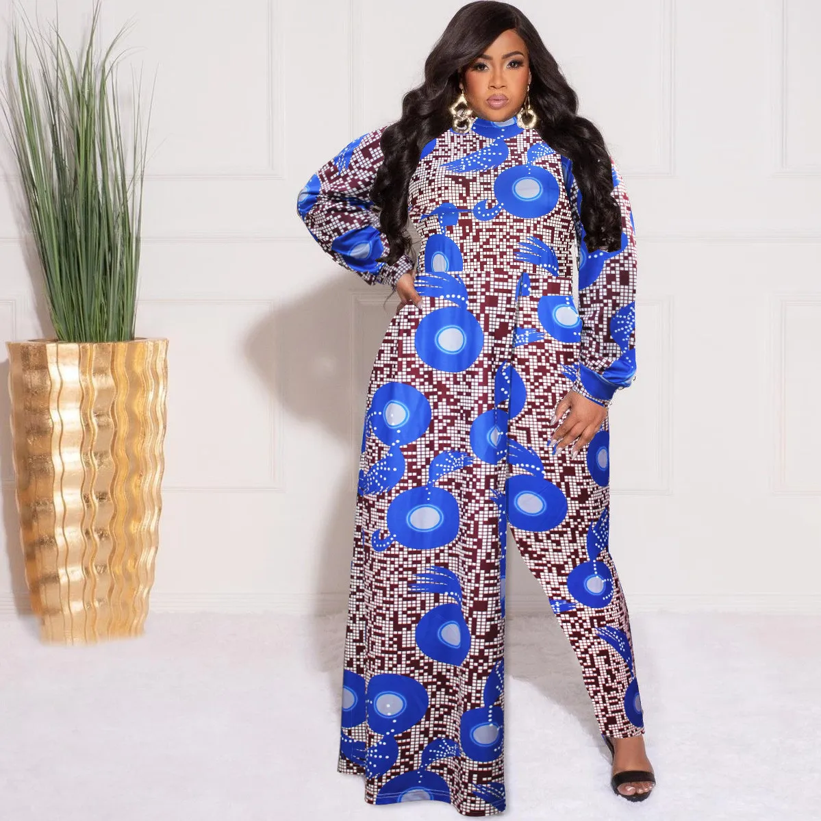 | Product Name | Plus Size Women’s Long Autumn Print Fake Two-Piece Jumpsuit |