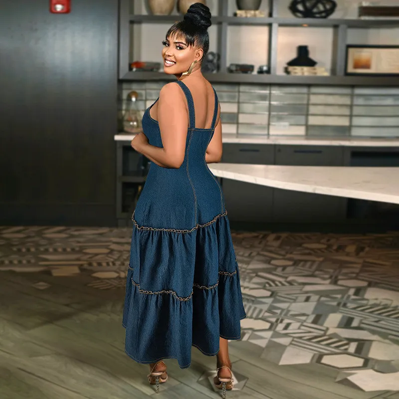 | Product Name | Plus Size Women’s Sleeveless Strap Long Denim Dress |