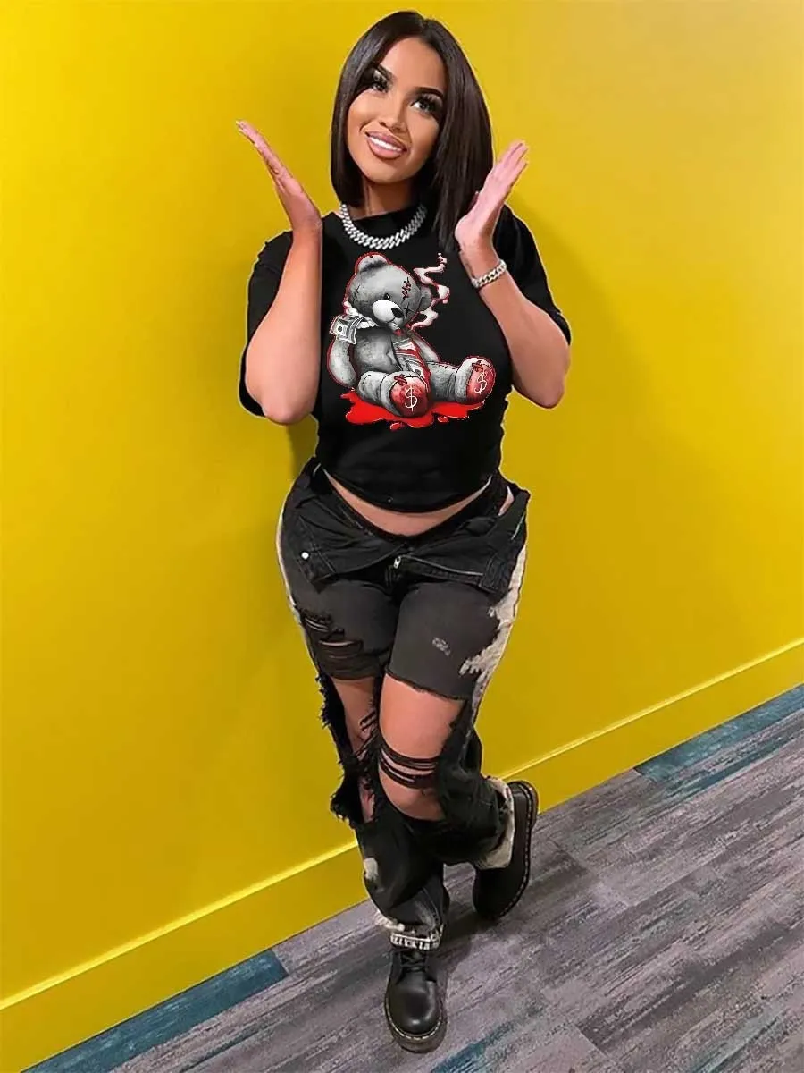 | Product Name | Plus Size women’s top cartoon bear print t-shirt |