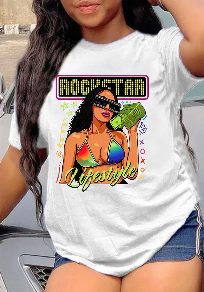 This Plus Size Women’s Top Cartoon Printing t-Shirt Made Of Comfortable And Elastic Fabric. It Is Wholesale Sexy Plus Size Tops For Women. With The Gradual Rise Of Feminist Awareness, The Mainstream Fashion Of “Beauty With Thinness” In The Past Can No Longer Dominate, Global Lover Advocates That No Matter Whether The Body Is Thick Or Thin, We Are The Most Unique Existence. Fat Girls Can Also Show Off Their Figure Generously. Global Lover Offer All Kinds Of Wholesale Plus Size Blouses And Shirts At Cheap Price And High Quality.