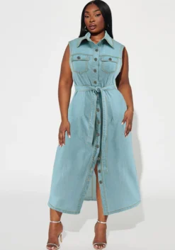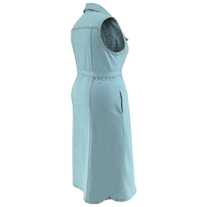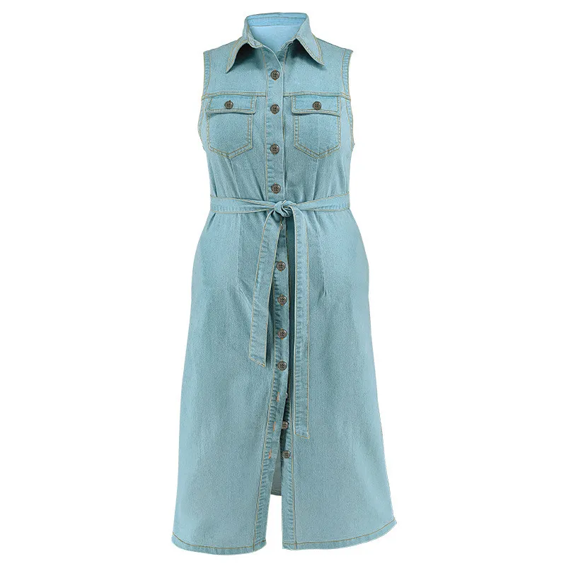 | Product Name | Plus Size Women’s Turndown Collar Sleeveless Button Belt Denim Long Dress |