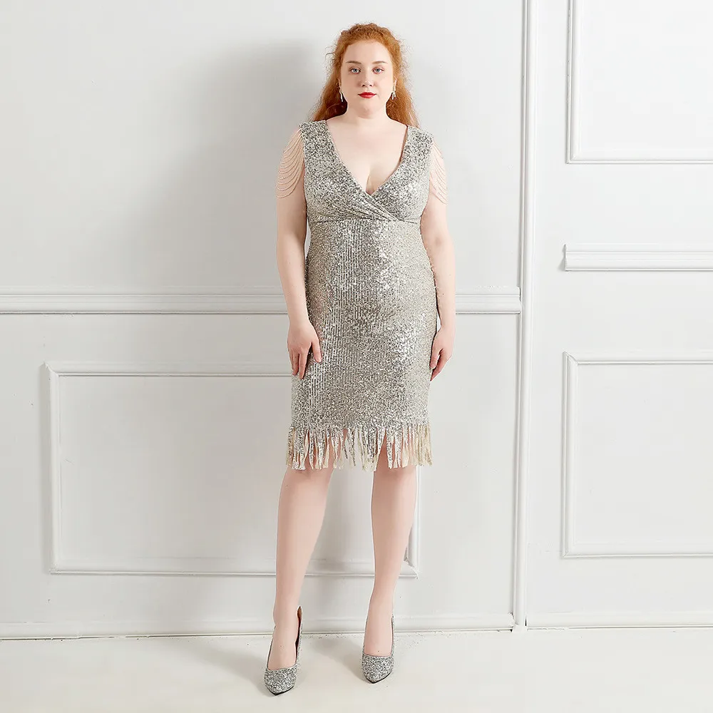 | Product Name | Plus Size Women Sequined Formal Party Midi Evening Dress |