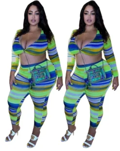 | Product Name | Plus Size Women Sexy Printed Striped Long Sleeve Top and Pants Two-piece Set |