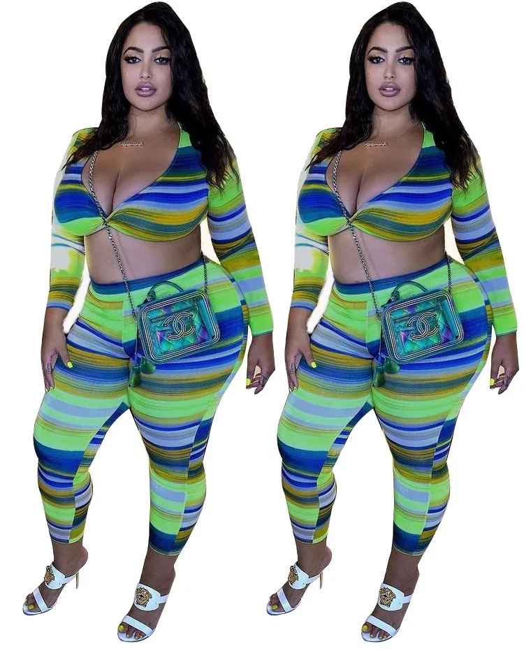 This Plus Size Women Sexy Printed Striped Long Sleeve Top And Pants Two-Piece Set Design And Made Of Comfortable And Elastic Fabric. Wholesale Plus Size Two Piece Sets Is a Must-Have Item For Curvy Ladies. Two Piece Sets Can Either Be Worn Together Or Individually, So You Can Combine Them Endlessly. Global Lover Offer Wide Range Selection And Hope Curvy Ladies Find Here a Warm And Exciting Place To Shop Cheap 2 Piece Suits Xl To 6xl. When You Need More Wholesale Plus Size Styles, You Can Always Find What You Need On Our Plus Size Best Online Site.