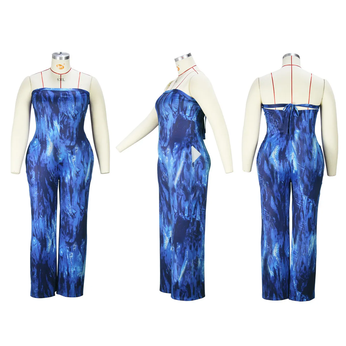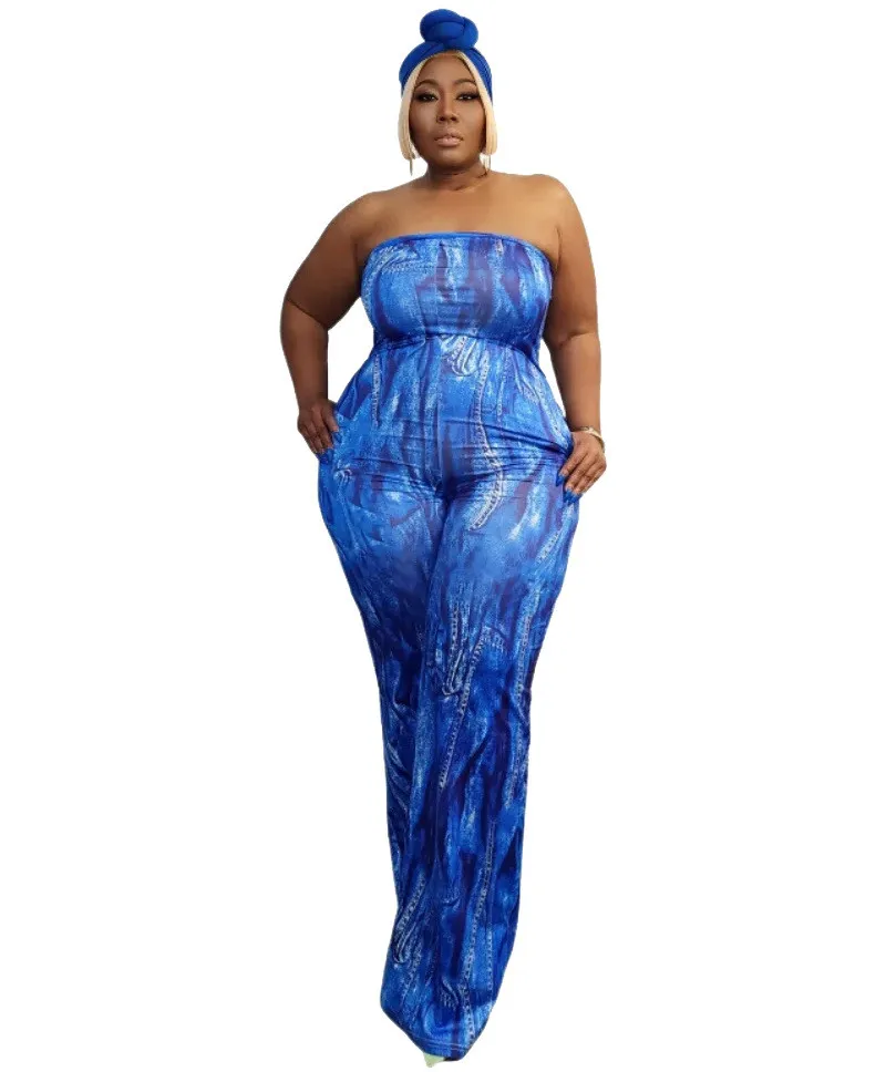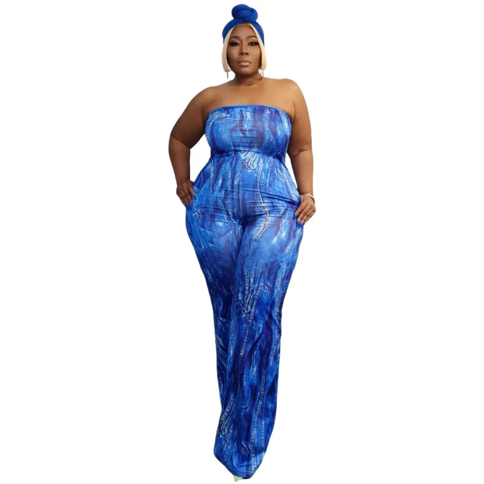 | Product Name | Plus Size Women Sexy Strapless Printed Wide Leg Jumpsuit |