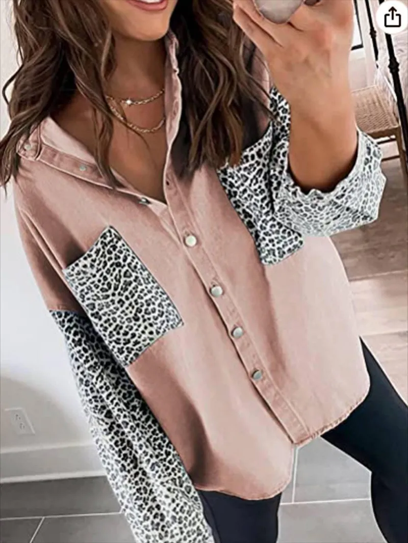 | Product Name | Plus Size Women Shirt Leopard Patchwork Loose Long Sleeve Top |