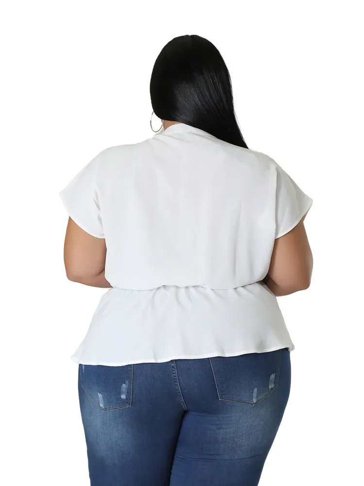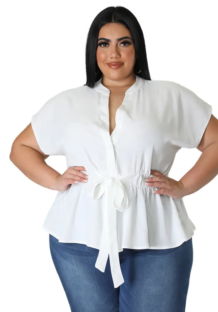 | Product Name | Plus Size Women Solid Belt Short Sleeve Shirt |