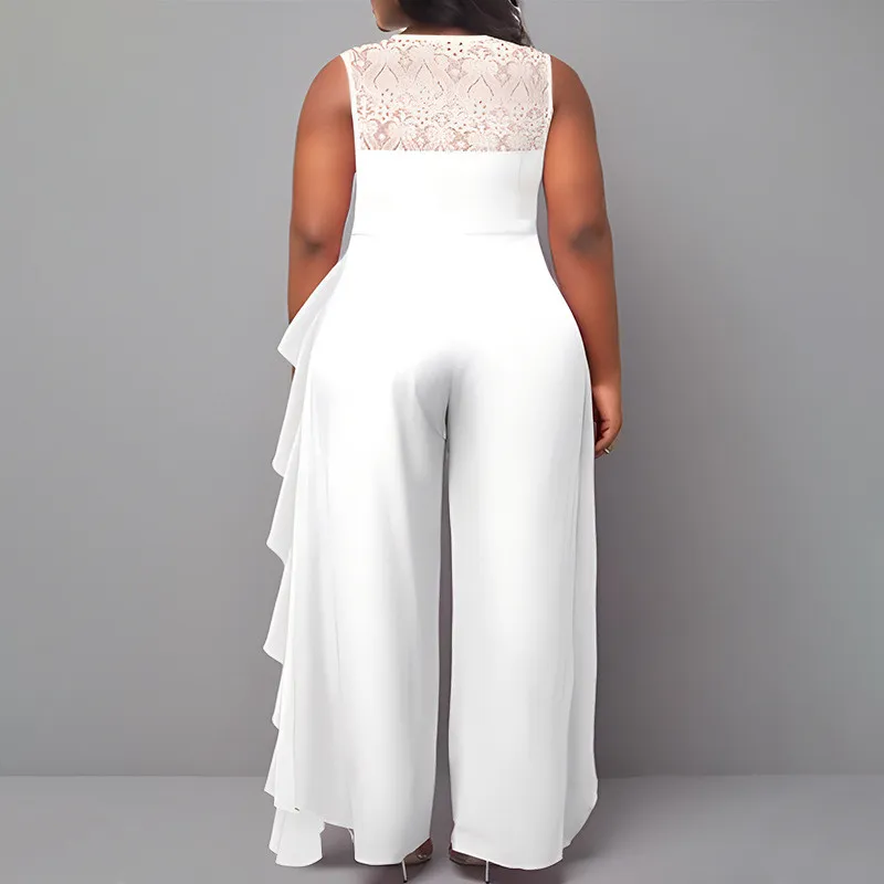 | Product Name | Plus Size Women Solid Career Lace Loose Jumpsuit |