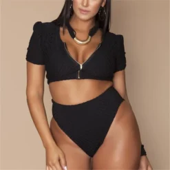 | Product Name | Plus Size Women Solid Zip Half Sleeve Bikini Swimwear |